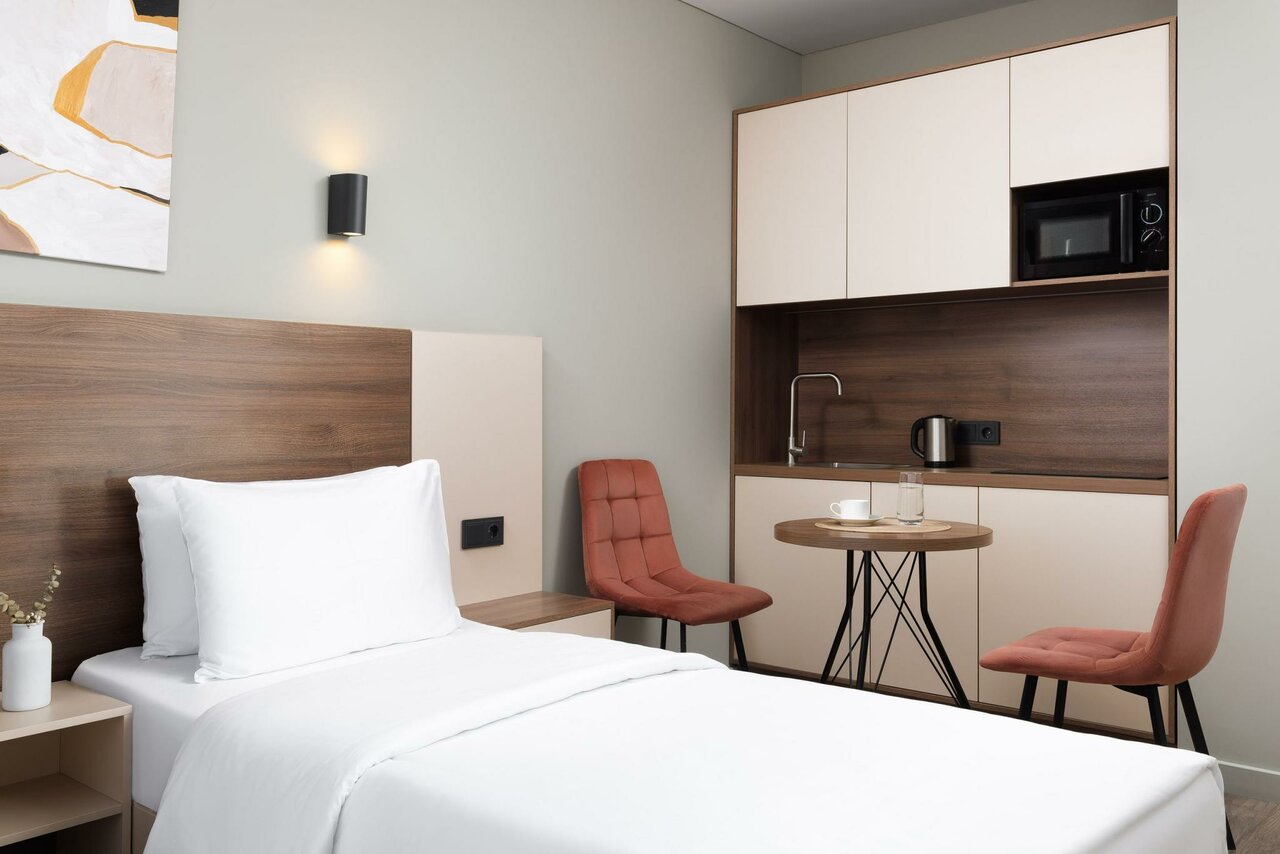 Расположение то, что надо. Рядом метро, пешком можно пройтись. Есть рядом парк, где можно погулять. Остановились в апарт-отеле Sateen и остались в полном восторге! Прекрасный апартамент, где сочетаются комфорт и стиль. Наш номер был очень просторный, с легким дизайном и всем необходимым для отдыха. Большой плюс — в апартаменте есть кухня которая отлично укомплектована, что можно готовить самому завтрак и ужин. Персонал отеля очень дружелюбный и отзывчивый, всегда готовы помочь с любыми вопросами. Сервис классный, даже в некоторых пятерках такого сервиса нет. При выезде жена забыла свой паспорт в шкафу. Нам об этом сообщили через минут 15 после выезда. Так как мы опаздывали на рейс, администратор лично привезла в аэропорт наш паспорт. За это ни рубля не попросили, хотя мы предложили заплатить хотя бы за такси. Респект отелю. Обязательно вернемся. Рекомендую