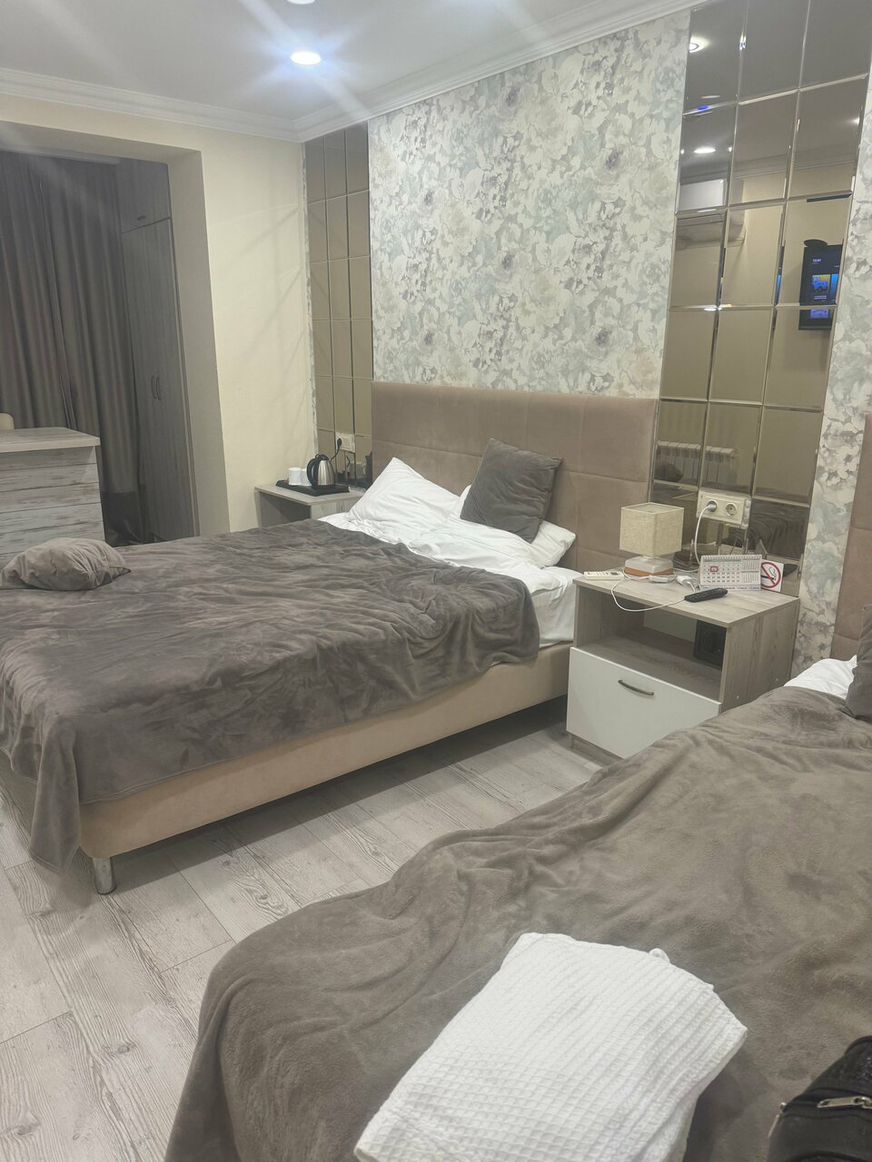 Уютный и комфортный. Один из самых важных для нас плюсов это чистота. В отеле, в номере, в ванной комнате, везде чистота идеальная. Всё соответствует описанию и фото. Полотенца и постельное белье белоснежные, тапочки есть. Телевизор, кондиционер, фен, холодильник, чайник, Wi-Fi всё в рабочем состоянии. Вкусный завтрак. Обязательно вернёмся. Спасибо за Вашу заботу и уважение к гостям.