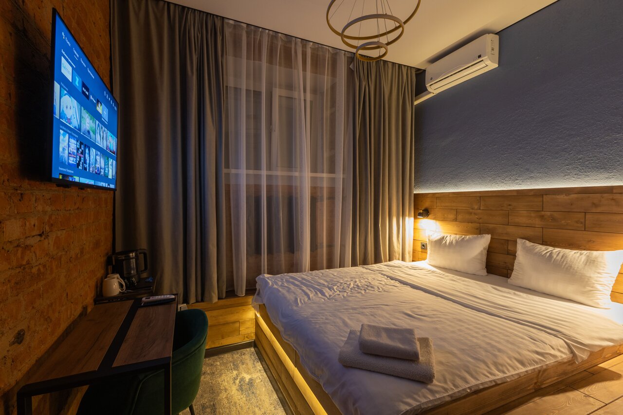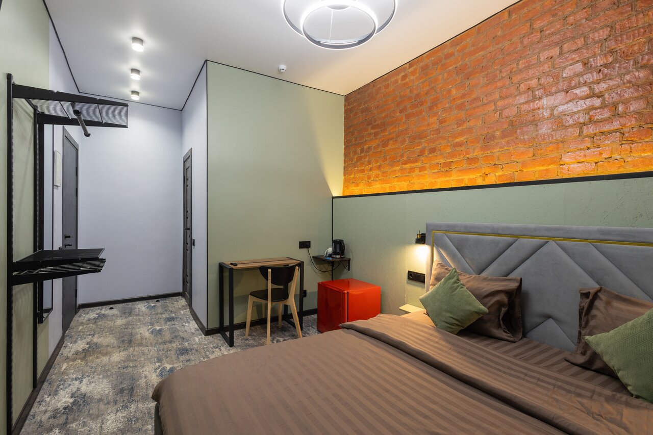 Очень понравился отель, классный интерьер, стиле лофт,чувствуется что все сделано душой, все новое ,есть все для уютного проживания; мягкая кровать, чистое постельное бельё, отличный аромат, душевой все чисто и локация хо-ро-шая до центре не далеко. Осталось только хорошо впечатление …