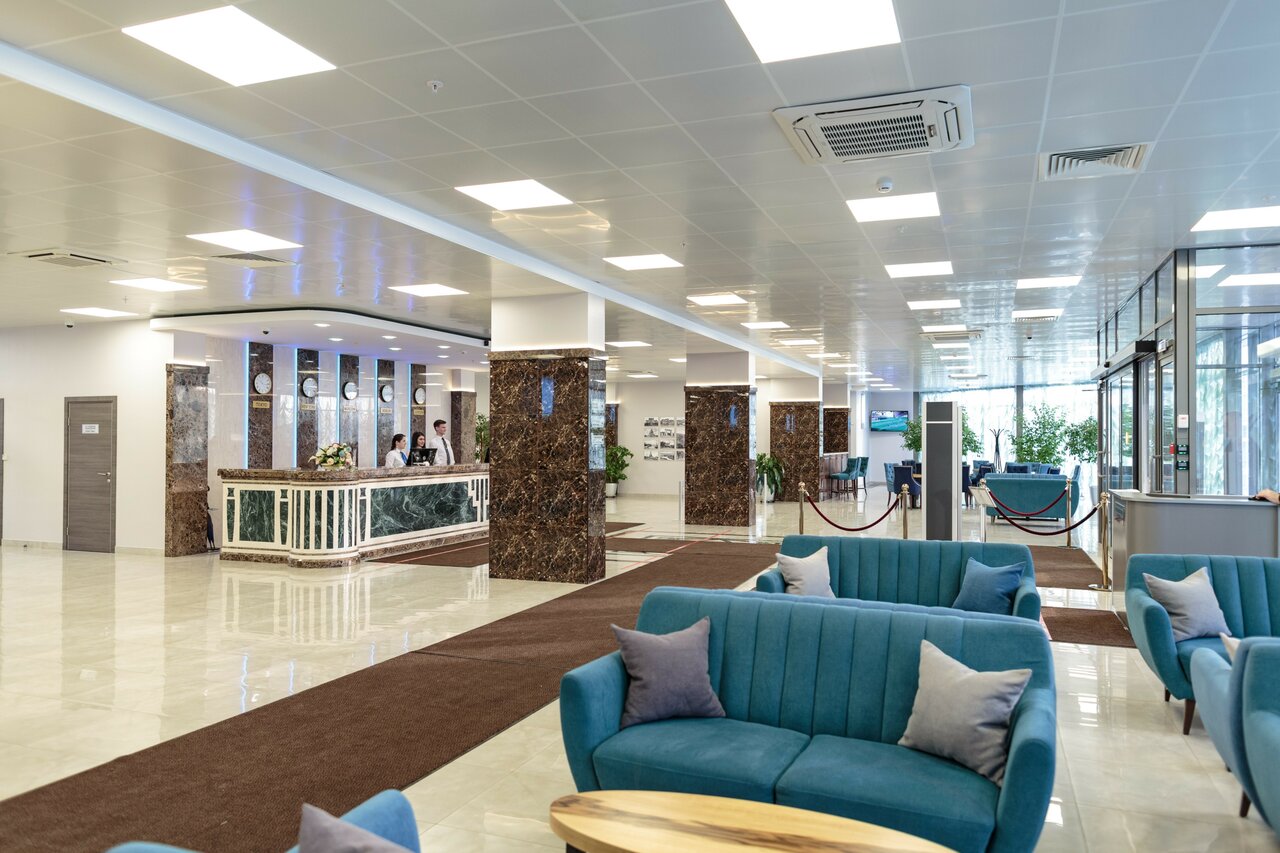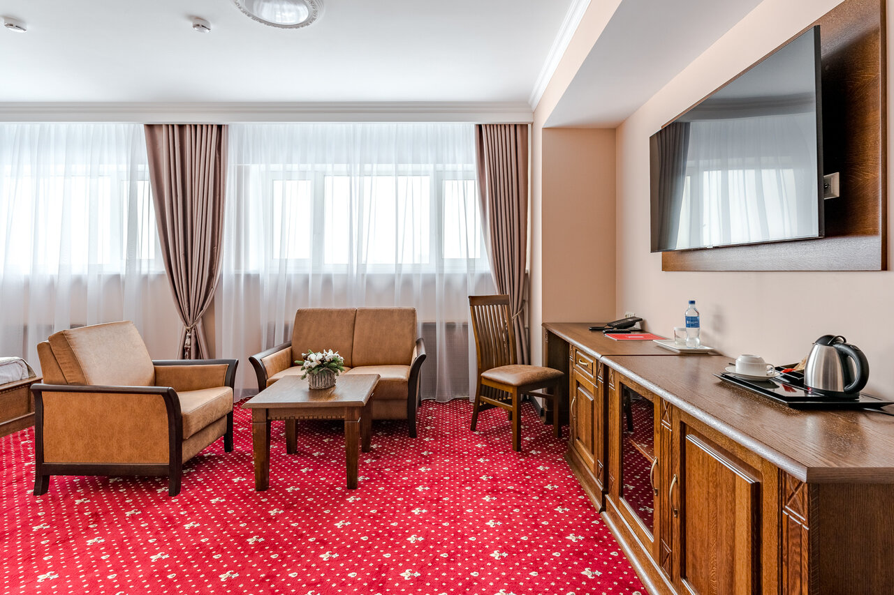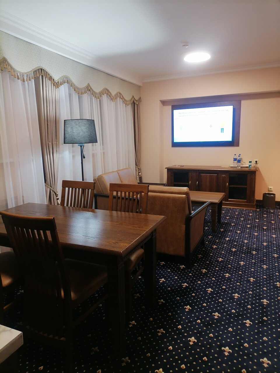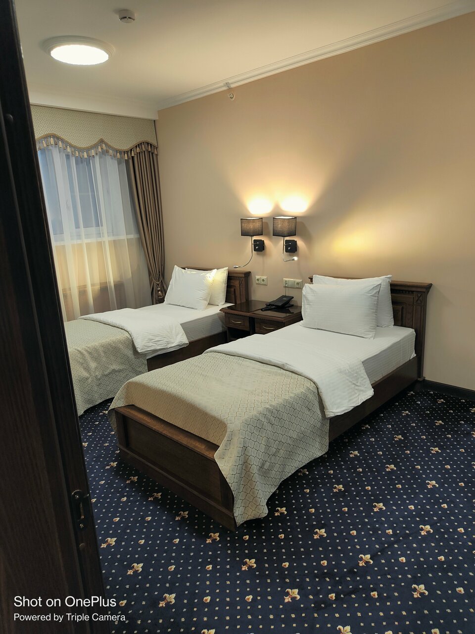 Стандартная гостиница. Номера маленькие, что в двух местных не развернуться в двоем, что в одноместном. Заселяют очень долго, при заезде подумала, что из-за того, что мы заезжали делегацией. Но пока проживали наблюдала регулярно очередь на заселение. И ещё в номерах не предусмотрены элементарные принадлежности вроде одноразовых зубной щётки и пасты — покупать их необходимо отдельно тут же у администратора. Что в наше время мене показалось довольно странным. Отель не сильно волнует конкуретно способность, и качество обслуживания клиентов. В отеле порадовали конференц залы. К ним претензий нет. И завтраки тоже были на уровне — за что ставлю четыре звезды.