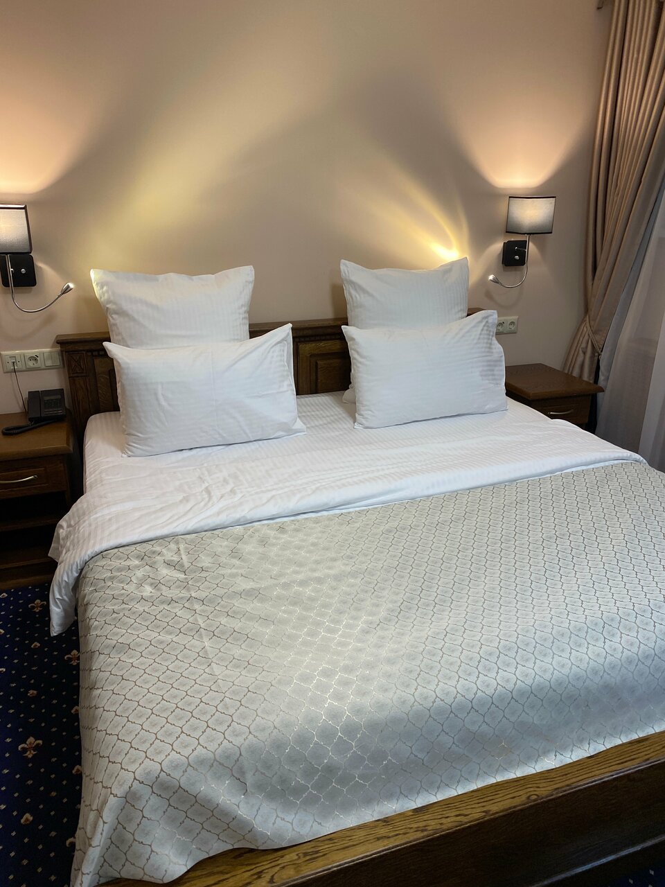 Минусов нет! Отель всем понравился, начиная от большой, свободной, бесплатной для гостей парковки и заканчивая отличным завтраком, который особенно понравится мужчинам, т.к. много мясного. Номер стандарт в корпусе классик очень понравился, большой, удобный, хорошая кровать и постель с разными подушками. Самое главное забыла- ИДЕАЛЬНО чистый номер!! Отель рекомендую, сами планируем сюда ещё не раз!