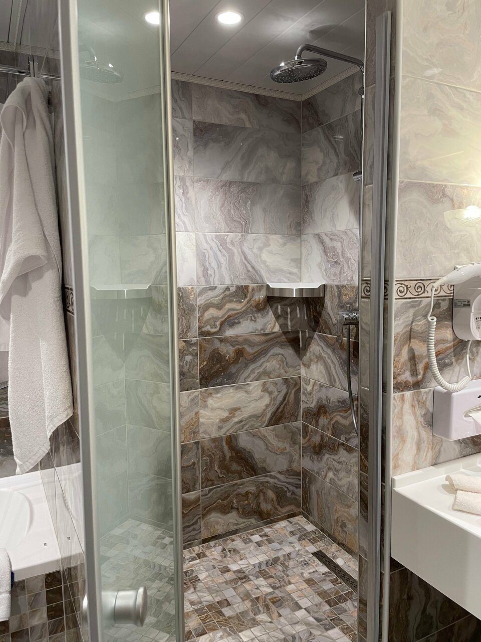 Жили в номере Стандарт двухместный улучшенный. Номер чистый, просторный. Сантехника новая. Завтрак — шведский стол. Еда вкусная. Обслуживание — персонал приветливый. Регистрация проходит быстро. Рекомендую.