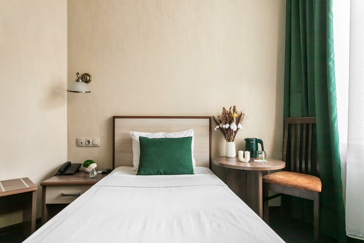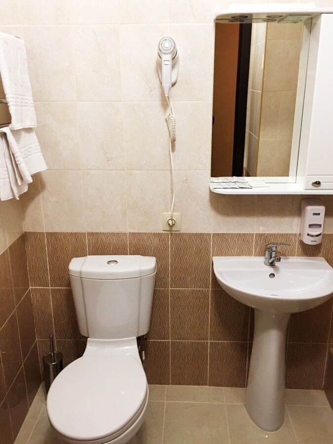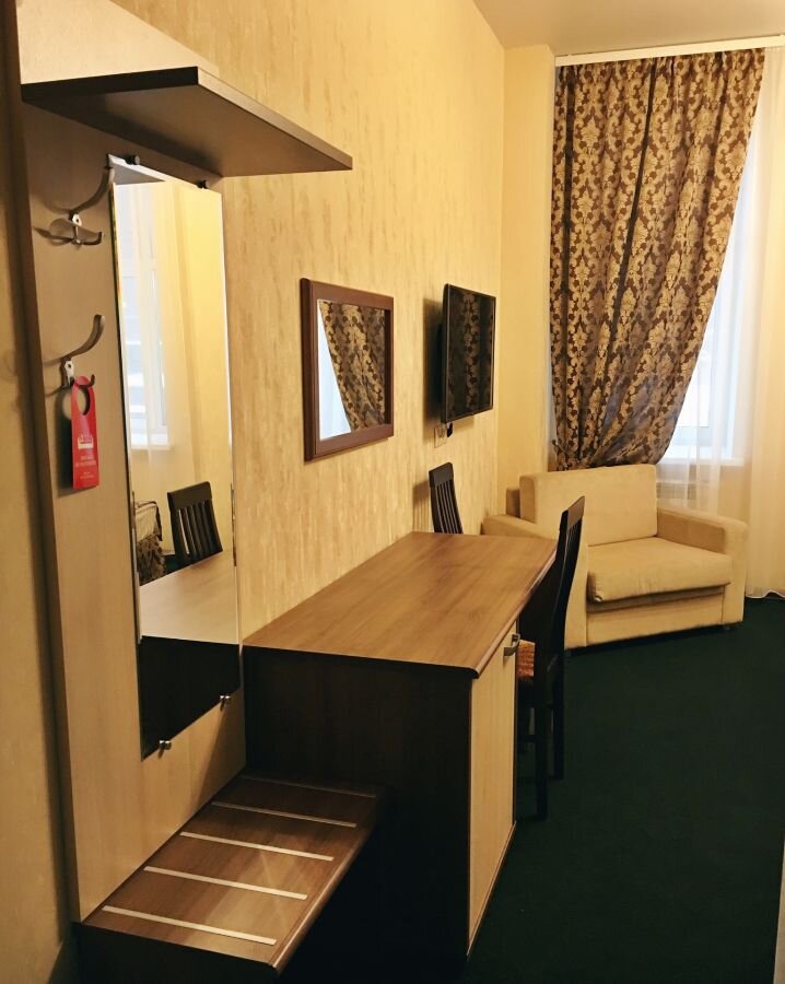 Гостиница хороша, расположение и внутри очень уютно. Очень удобно, что при ней есть кафе. Но несмотря на то, что она относительно новая, в номере в душевой некоторые детали уже отломаны и не починены. В номере нет ни чайника, ни холодильника. Хотелось бы, чтоб кроме шампуня, геля и мыла одноразовых, была ещё и одноразовая зубная щётка и паста. Но в общем очень даже хорошо. Кровать отличная, матрац удобный, бельё белое, персонал внимательный. Желаю успехов и процветания. Советую!