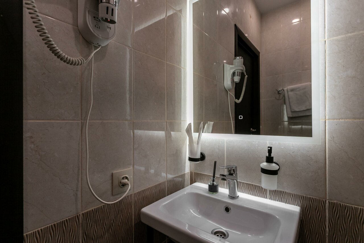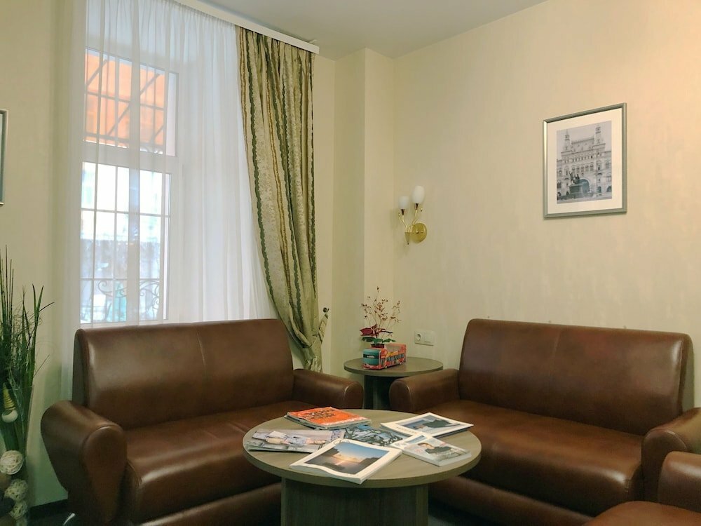 Услуги: — Номера (от 4500 до 8000 ₽/ночь) с санузлом, Wi-Fi, телевизором, холодильником, феном, халатами и тапочками. — Круглосуточная стойка регистрации, ускоренный заезд/выезд (14:00 / 12:00). — Дополнительно: камера хранения, лифт, прачечная, химчистка, платное размещение с животными.