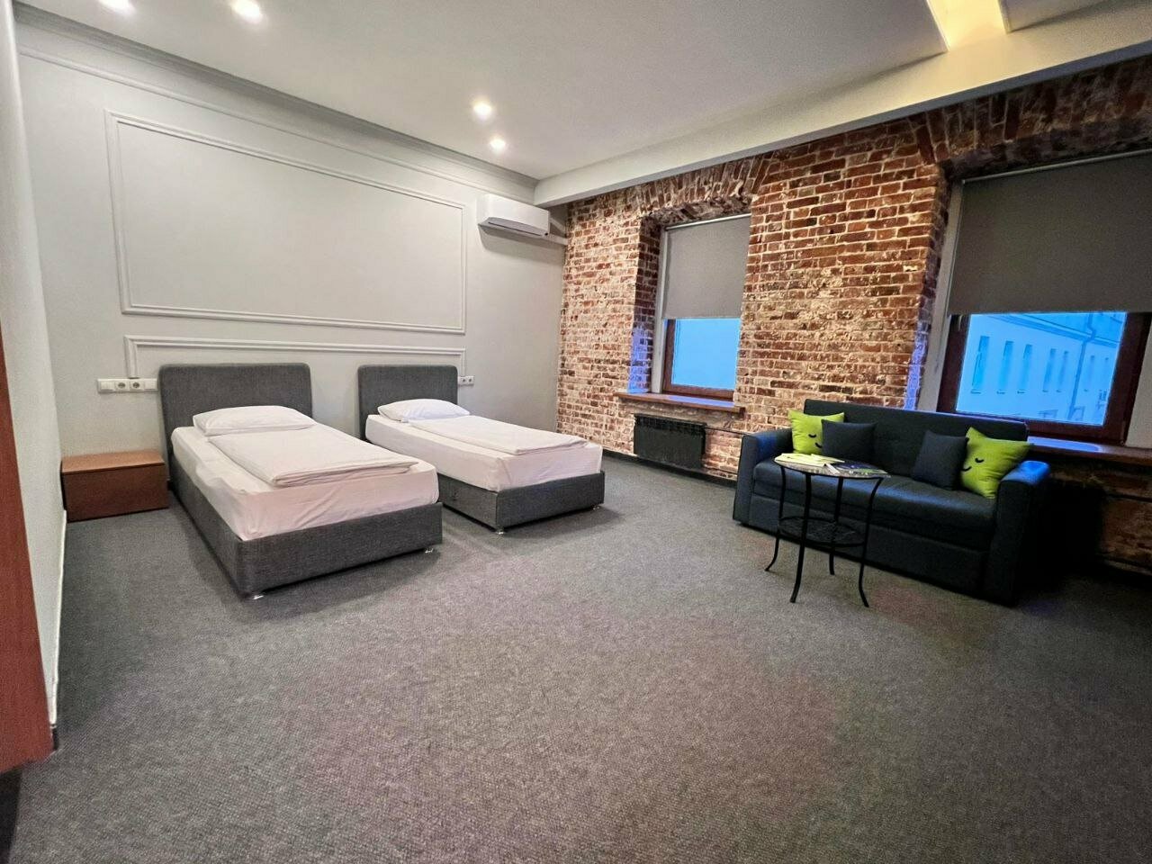 Трехместный номер с широкими кроватями. В номере имеется телевизор, мини-холодильник, чайник, чайный-набор. Собственная ванная комната. Завтрак предоставляется бесплатно. Бронируйте по телефону будут скидки.