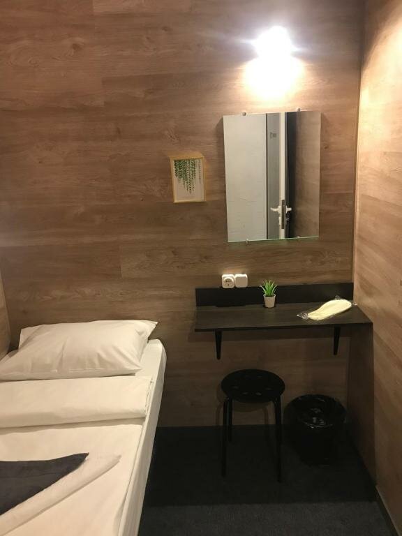 Ну,на одну ночь только если. У кого клаустрофобия,вам точно не туда. В двухместном номере с большой кроватью была) ни одного окошечка,как в коробочке, поначалу воздуха не хватало,потом привыкла) но больше не хочу туда!)) В душевых и туалете холодно. Народ не привык убирать после себя,и оставлять душ и уборную в нормальном порядке. Мужики так особенно засранцы. Большой плюс- есть тапочки одноразовые. Жирный минус- не предупредила администратор, что в туалете мокрый пол,что там вода прям налита,можно убиться!) Цена как цена для таких вот условий.