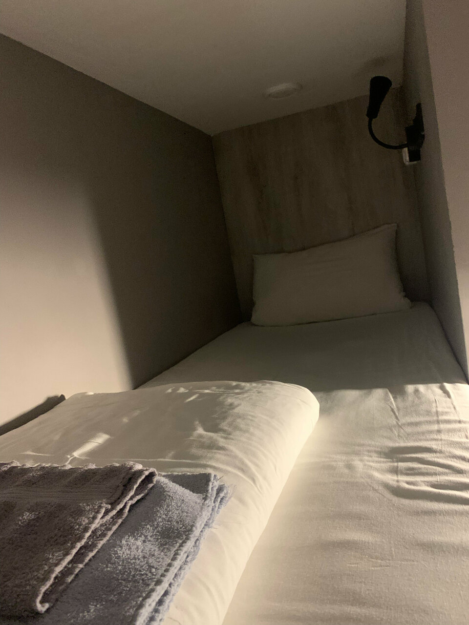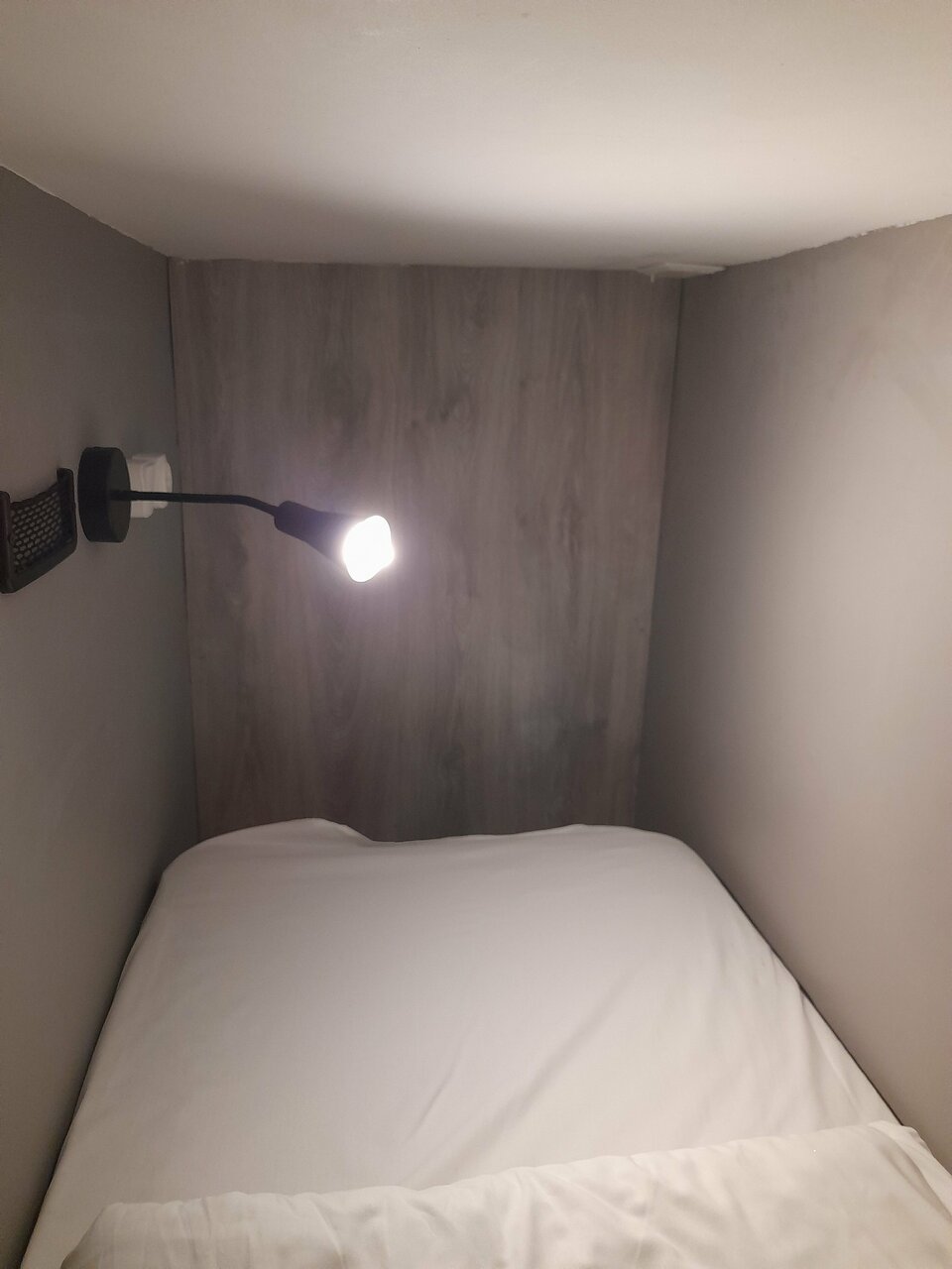 На одну ночь не плохо, а вот дольше проживать уже тяжело. Начну с положительных сторон. Это цена, подороже чем в хостеле, дешевле чем в отеле, при этом хоть и маленькие, но отдельные номера, для любителей одиночества- отлично. Персонал следит за порядком, 5 раз посещала данное место и 5 раз было чисто. В общем помещение есть холодильник для жильцов, микроволновая печь и кулер. В душевых есть фен. Из минусов: летом жить не возможно, вентиляция совсем не справляется, в номере невероятно жарко. В туалете не всегда есть туалетная бумага, появляется там только по утрам. В душевых на полу очень много воды, заезжающим советую иметь свои тапочки, потому что местные промокают сразу же. В последнее посещение случился неприятный интендант, в 6 утра военкомат разбудил весь отель, пока пытался достучаться до кого-то. Слышимость невероятная, слышно даже вибрацию в соседних номерах. За свои деньги место не плохое, но из-за перечисленных минусов только 3.
