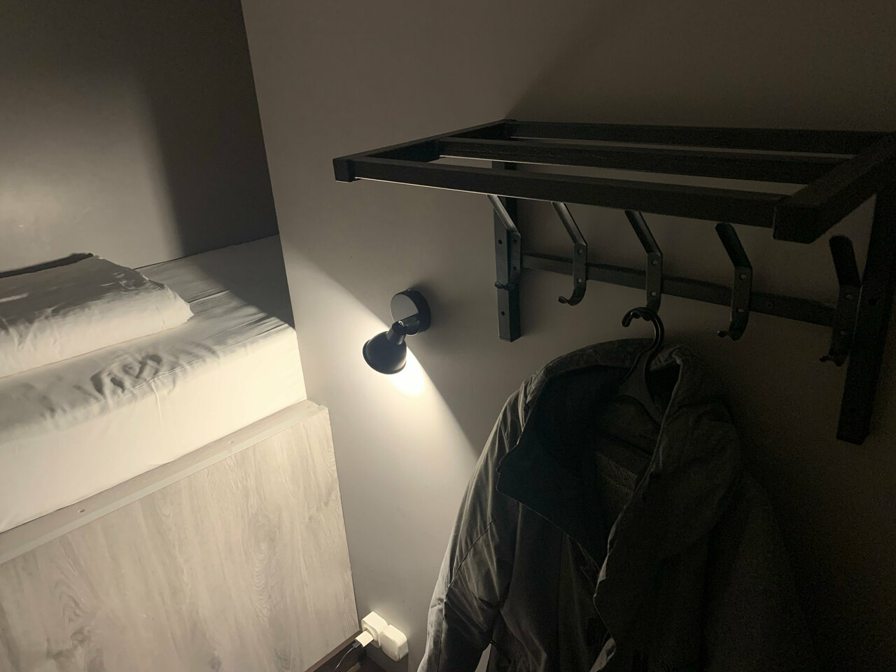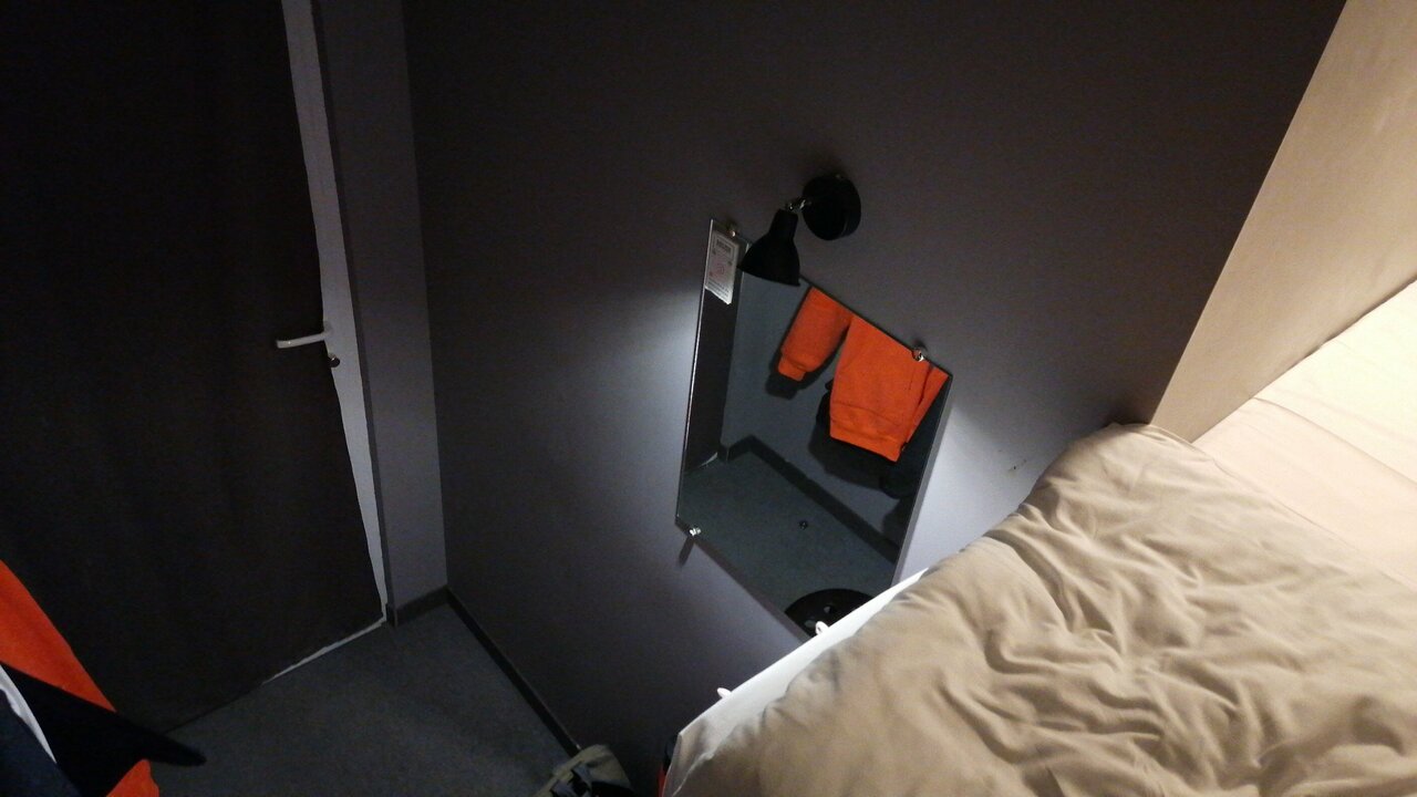 Компактный номер для одного человекаДверь закрывается на ключВ стоимость входят тапочки, полотенца для лица и для телаСанузлы, фены, принадлежности, а также чай/кофе, куллер с водой, микроволновая печь, холодильник, находятся в общем доступе.