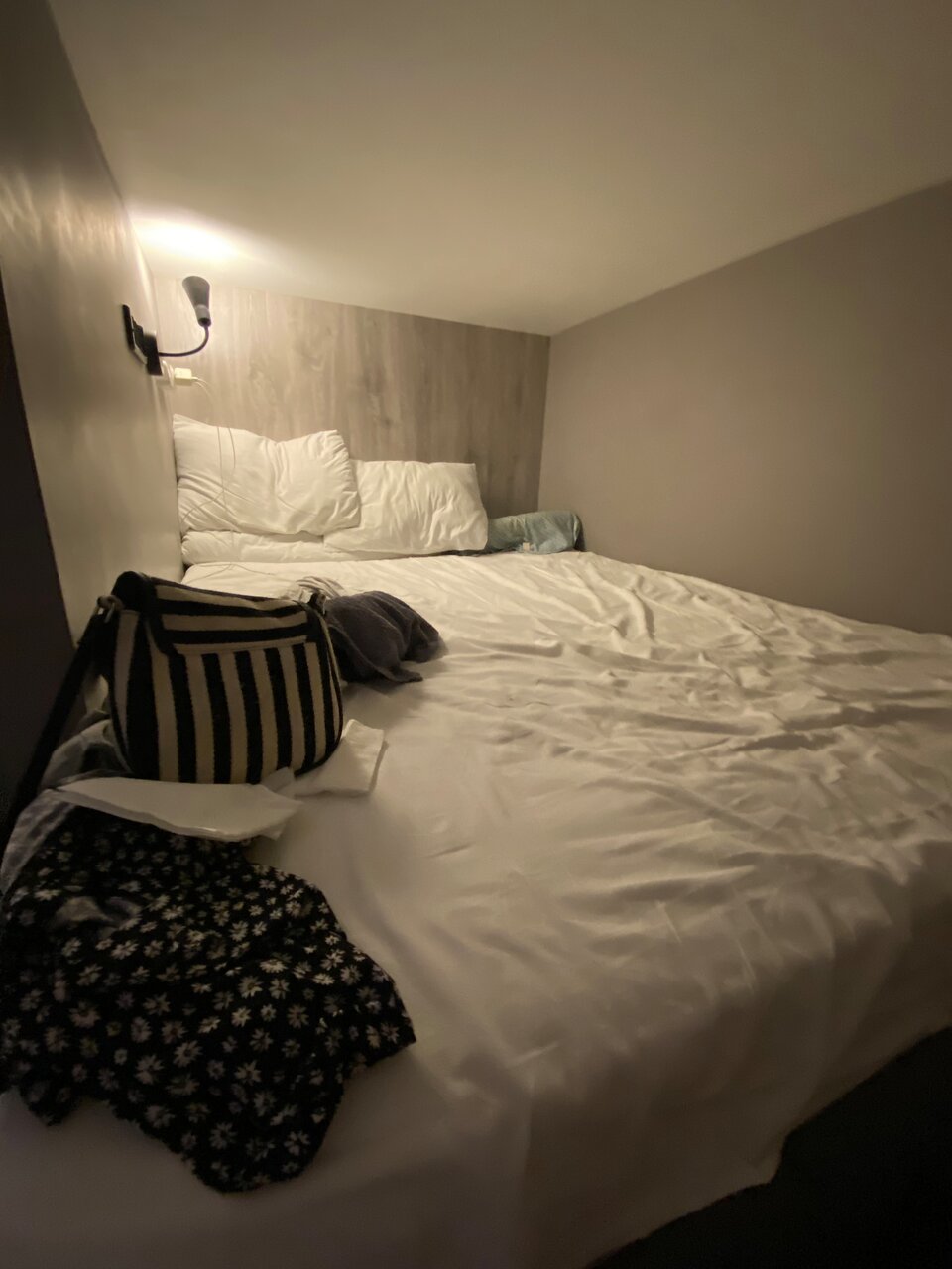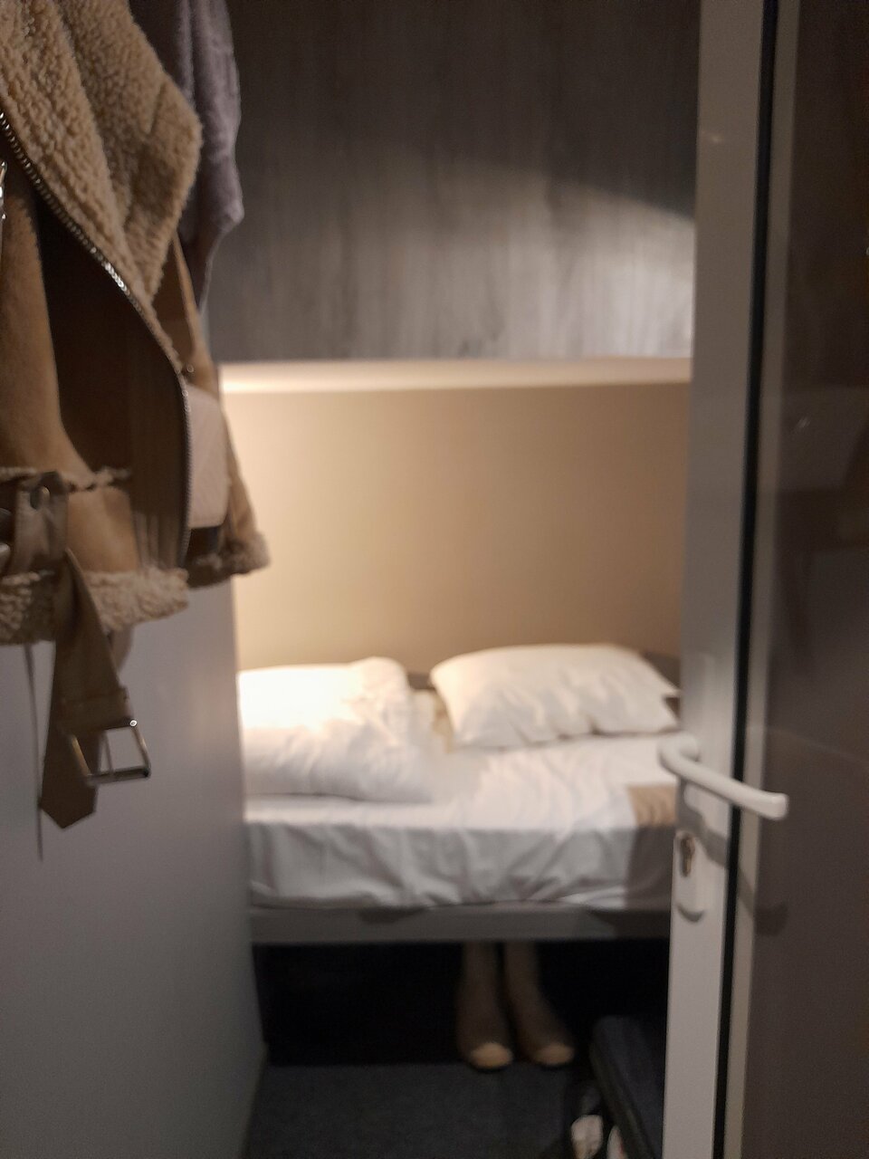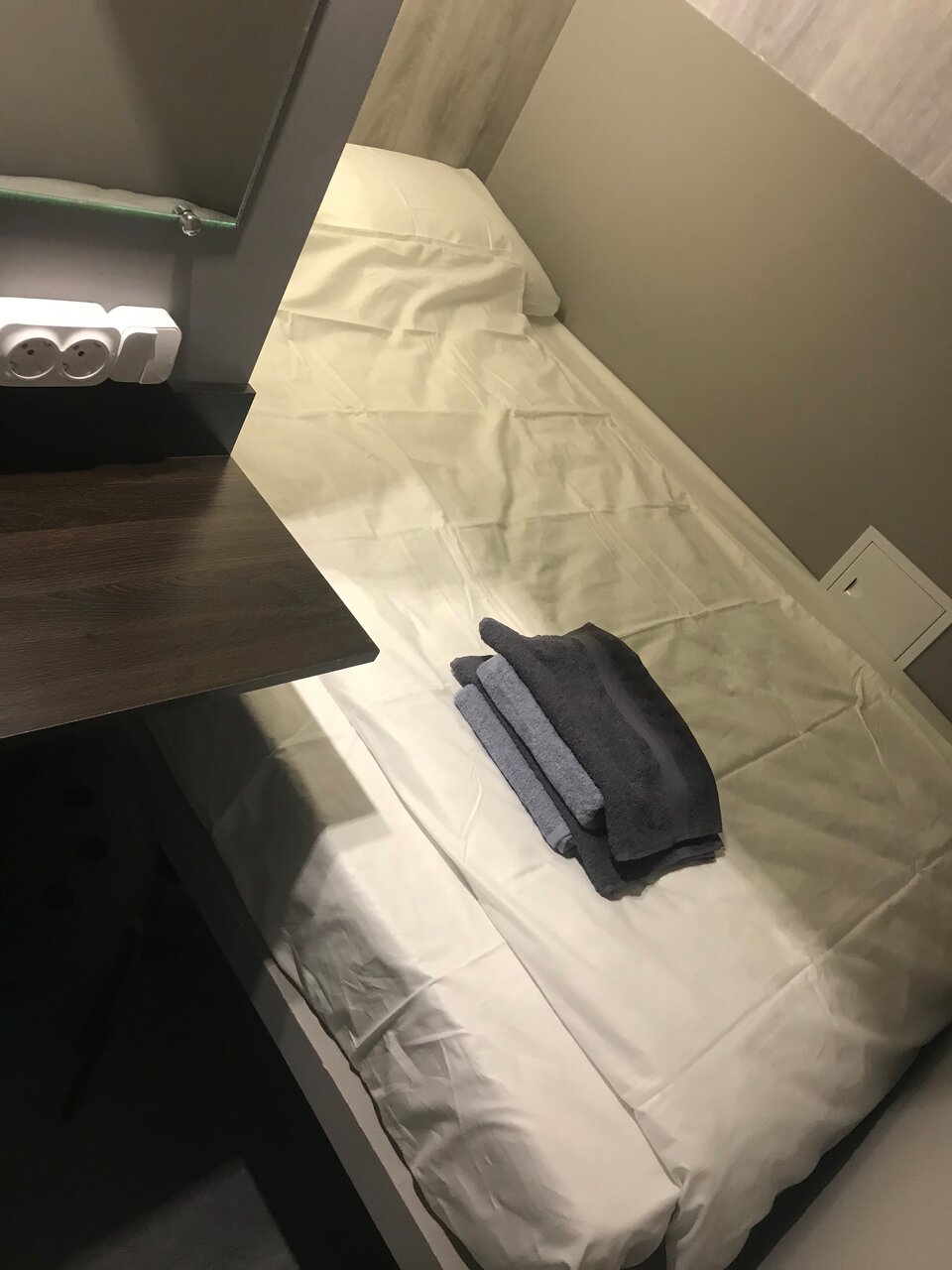Плюсы: 1). Чисто 2). Есть посуда на кухне, вода, корица, столовые приборы, мыло в душе. 3). Недалеко от метро Минусы: 1). Номера действительно ооочень маленькие, настолько,что вдвоем в двухместном номере не развернуться 2). В номерах очень темно, два светильника и те светят на потолок 3). Некоторая мебель была сломана, например полочка над кроватью(прям с концами выдернута), стул на кухне 4). Подушка и одеяло порваны, полотенца явно уже повидали жизнь 5). Стены очень тонкие, если кто-то в отеле храпит-будьте уверены, что вы это услышите. Итог: За эту цену можно найти что-то более комфортное