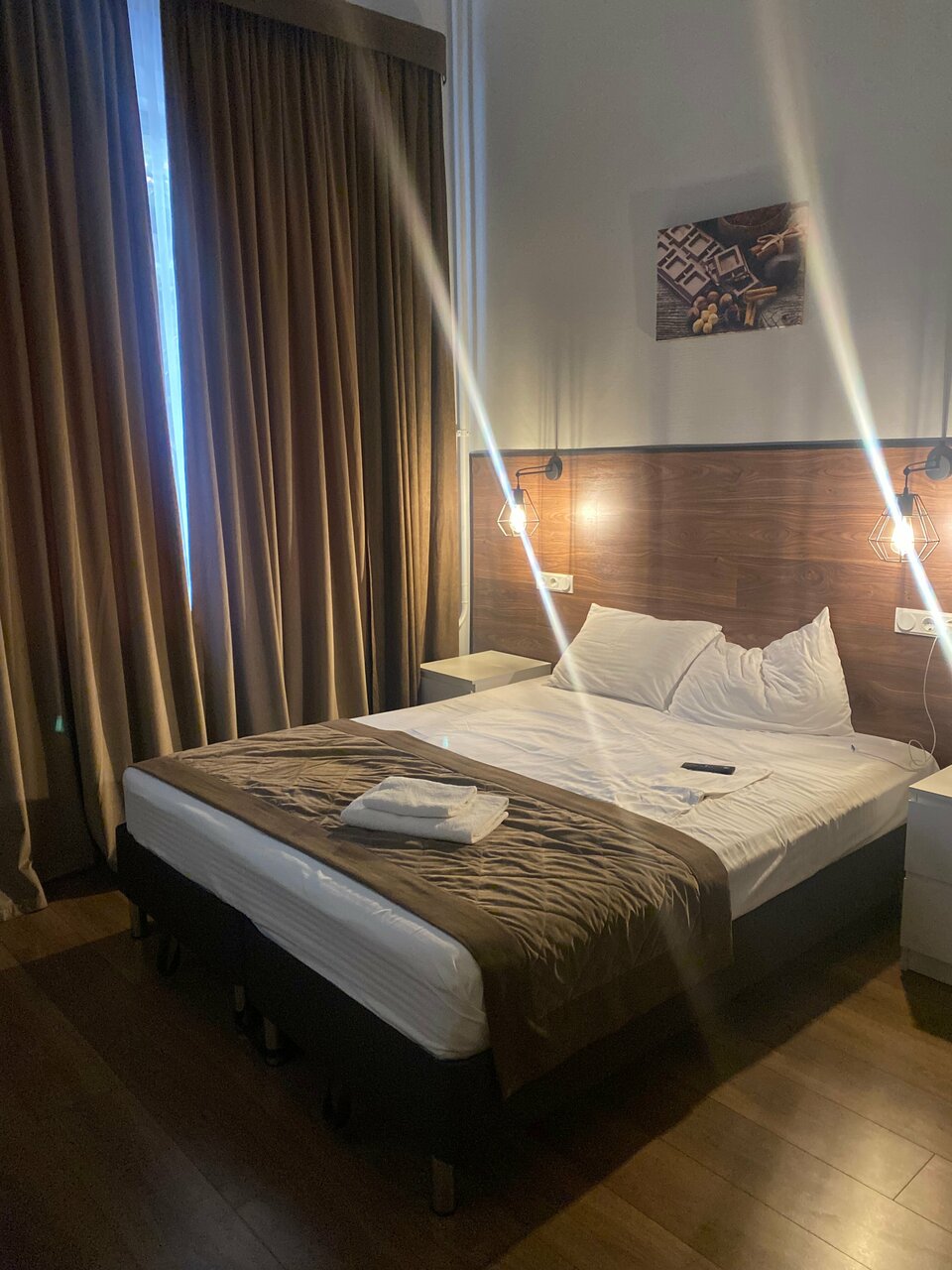Из хорошего: смогли заселиться в отель в 10 утра, в номере был фен, телевизор Из плохого: - по обслуживанию : при регистрации нас торопили, пока мы читали договор. - в комнате мало света, есть чайник, но нет для него воды, есть кондиционер, но пульт нужно просить отдельно, семейный номер ( ключ #1) находится на первом этаже около стойки регистрации, окна выходят во двор с машинами, абсолютно все слышно от туда и с улицы тоже, все разговоры в номере слышны у стойки , на подушке пятно, кусочки пыли были на полу, пол под столиком липкий, лампочки (низко находятся над кроватью) в пыли. - в ванной нет полотенца для рук, на полотенце пятно, ободок унитаза был в пыли , в ванной пыль по углам, горячая и холодная вода в душе поменяны местами (нас не предупредили), низкий светильник в пыли, герметик в душе в плачевном состоянии, там в углах уже черное, на стенах видны неприятные разводы от засохшей воды.