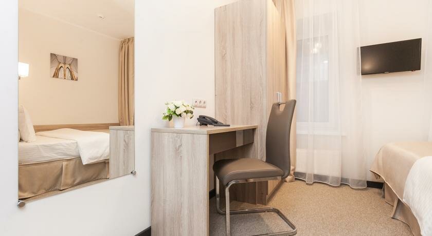 Отель понравился. В центре города, удобно. Красная площадь в шаговой доступности. Плюсы: быстрое заселение, чисто и достаточно комфортно. Минусы: в номере не работал вентилятор в ванной комнате, из-за этого повышенная влажность. И за 4 дня проживания не меняли постельное белье. Может такие нормативы в гостинице, хотелось бы смены белья.