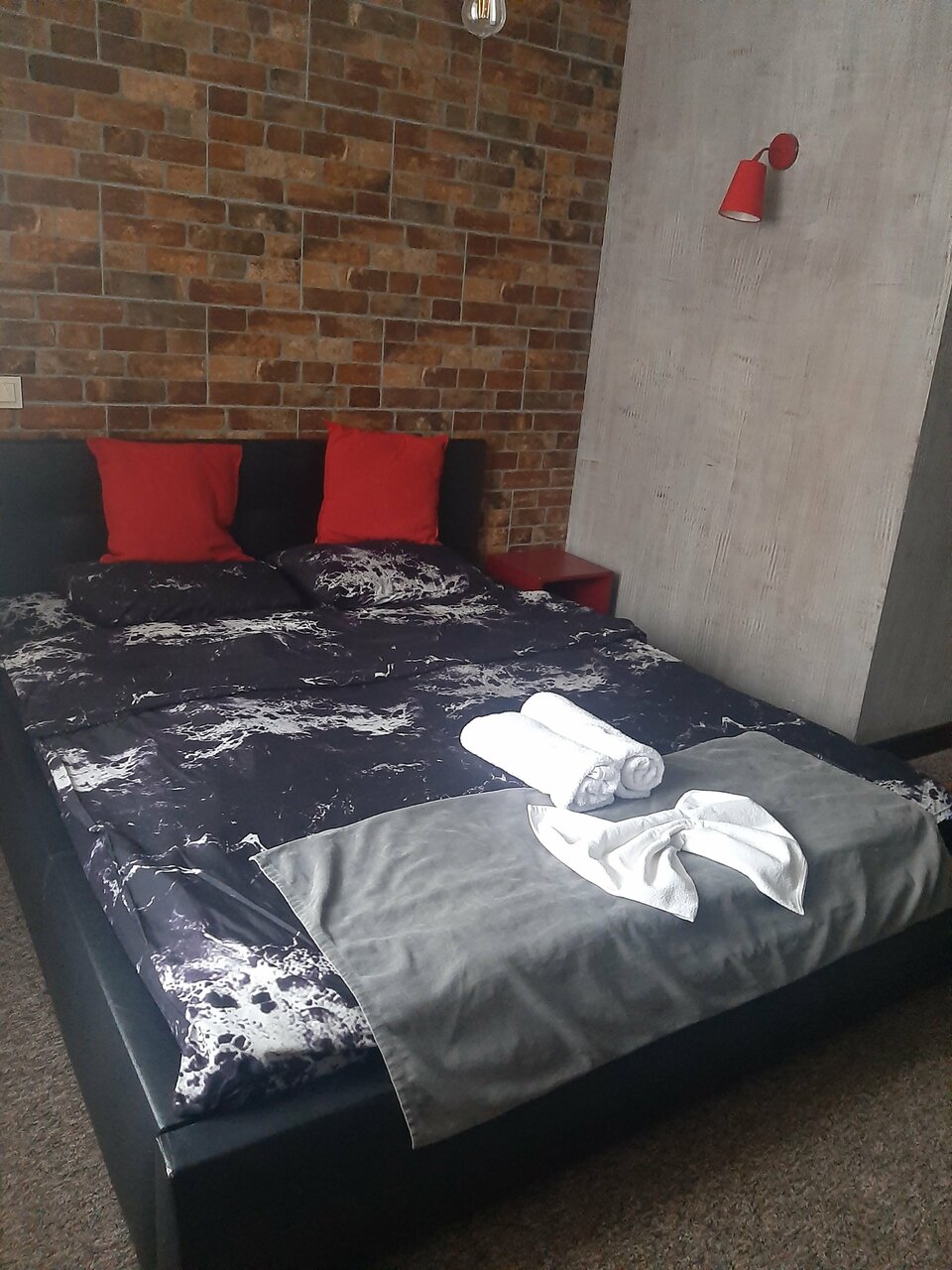 Была проездом, забронила через карты, удобно добралась, машину есть где поствить (не своя парковка, но норм, место есть). Удивлена, номер не критично большой, но и маленьким не назвать. В комнате минимум мебели, но хватило, зато куча приятных бытовых штук (от дорогой посуды до аромалампы, подушки на выбор 3 вида, даже ортопедические удивлена). В целом добротно и приятно.