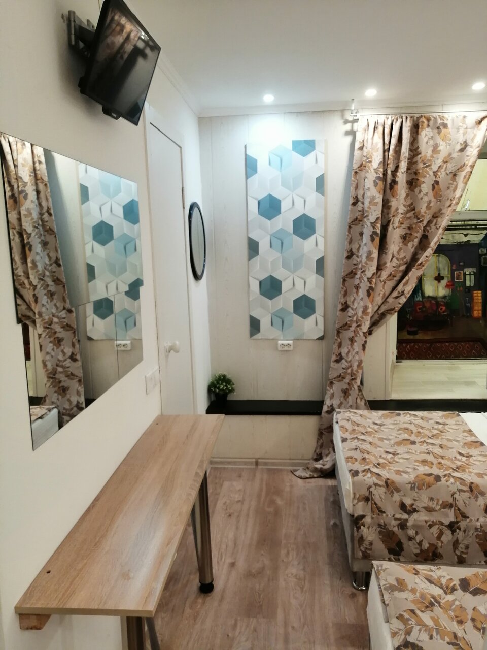Была в этом отеле с мужем. Приехали в 12 часов, администратор сказала, что необходимо доплатить 500, чтобы нас заселили на два часа раньше, мы пошли на это условие и заплатили. Нас поселили в номер на цокольном этаже, где было очень темно. Специально искала номер с телевизором, но потом оказалось, что телевизор не работает, под окнами валялись какие-то фантики, потолок в туалете тек, поэтому одна лампочка очень плохо работала. Думаю, что отелю нужно пересмотреть свои цены, раз они предлагают гостям такие условия проживания.
