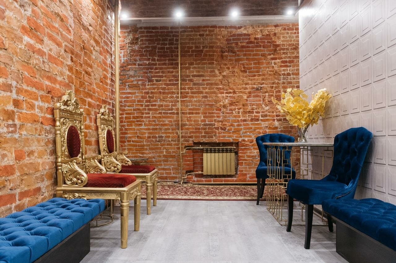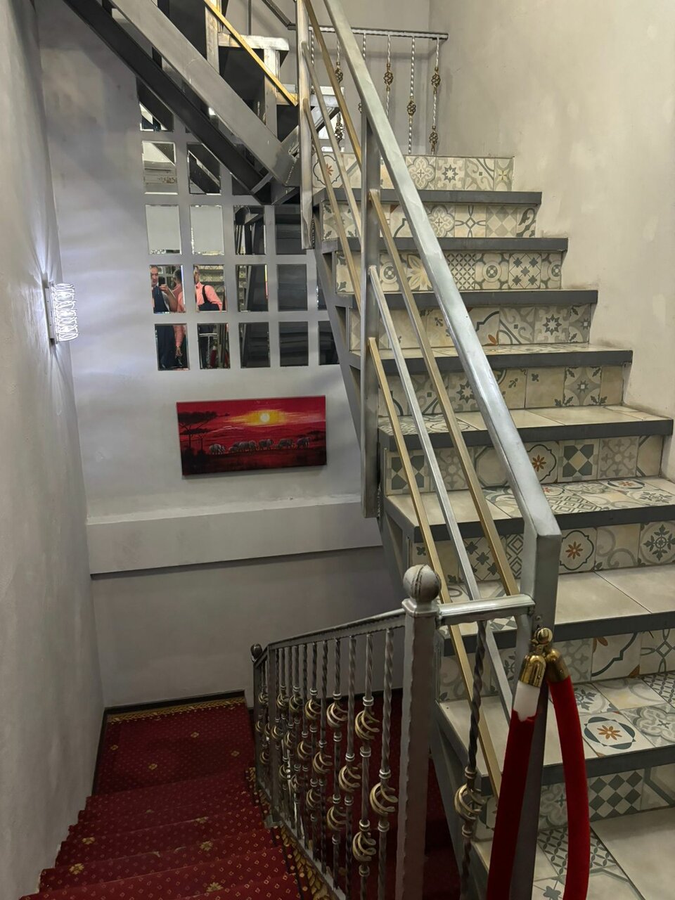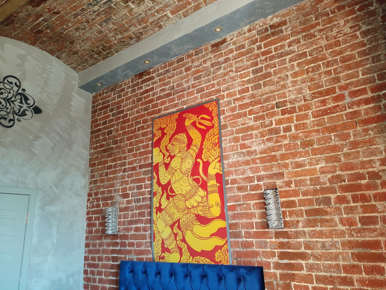 Большой минус в двух номерах пахнет тиной(канализацией), номер мрачный, с дизайнерской безвкусицей, коричневые подушки, жёлтое покрывало, фиолетовые шторы, красный ковролин, серые стены, шкафчики как на заводе в раздевалке, бредовые узоры на стенах и потолке. Цветные, годами не стиранные пуфики кладут на подушки для сна. Мерзковата обстановка.