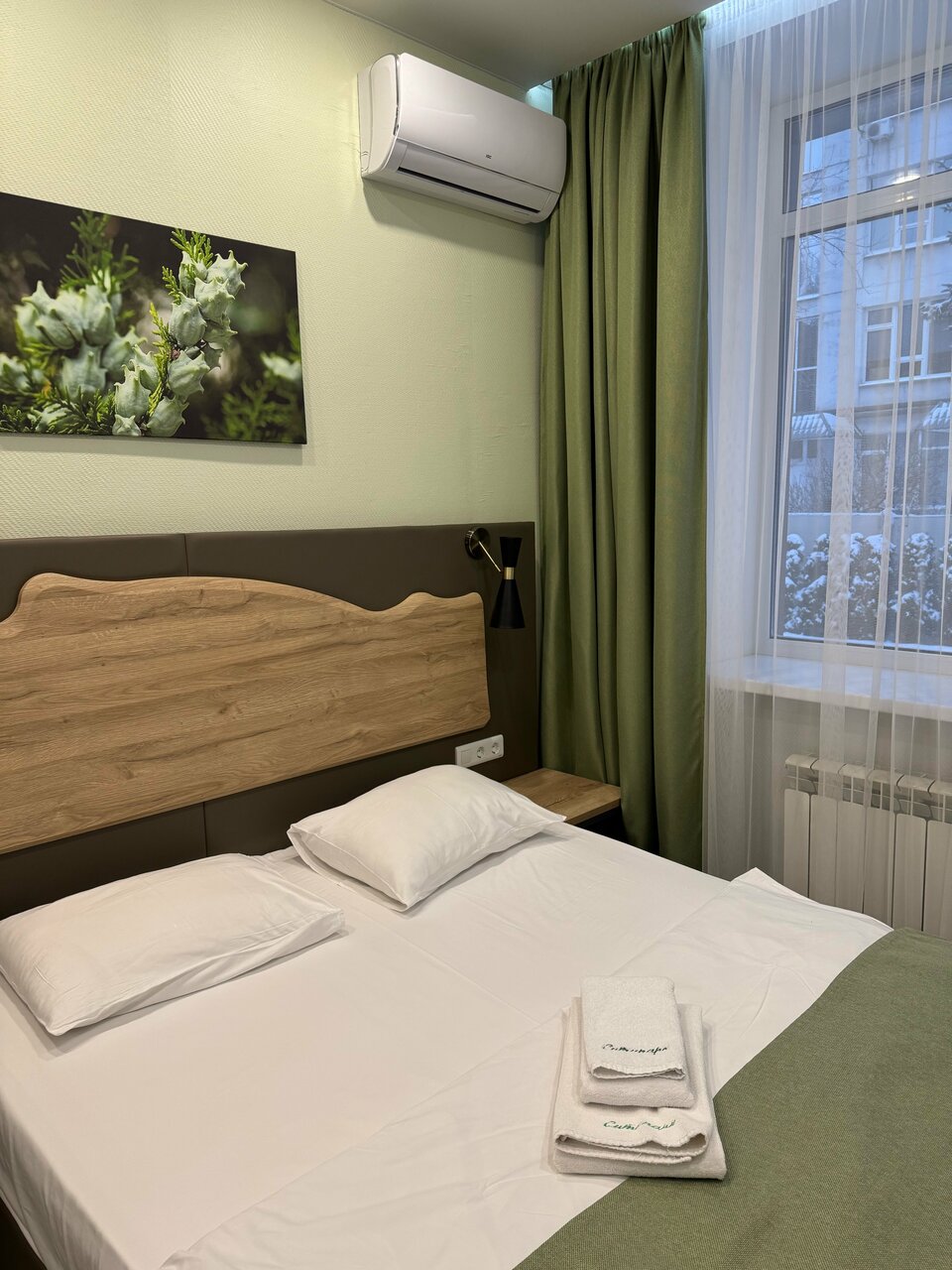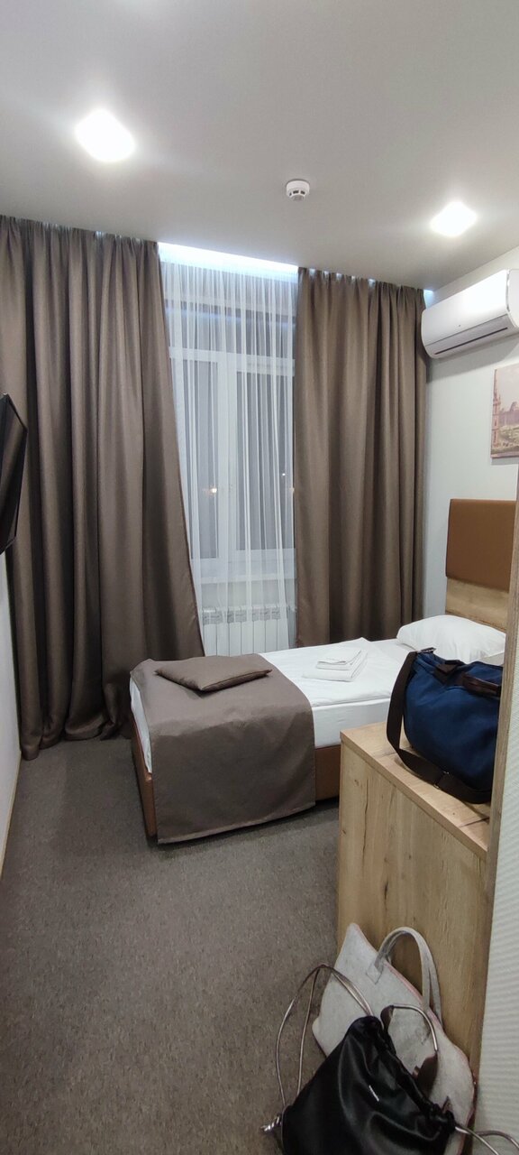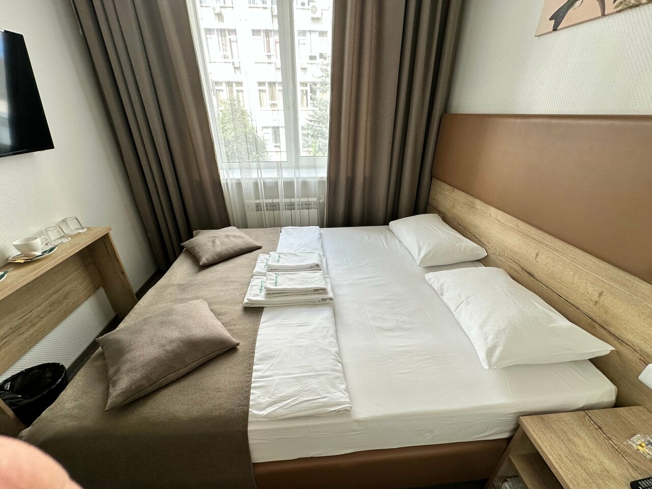 Номер стандарт маленький но уютный. Очень чисто. Телевизор и кондиционер работают. Есть все полотенца, наборы шампуня, зубные щётки. Персонал вежливый. Кушали один раз в их кафе, простенько но вкусно. До метро 8 минут. Много прод.магазинов. Во дворе есть лавочки и небольшой фонтан. Общие впечатления отличные!