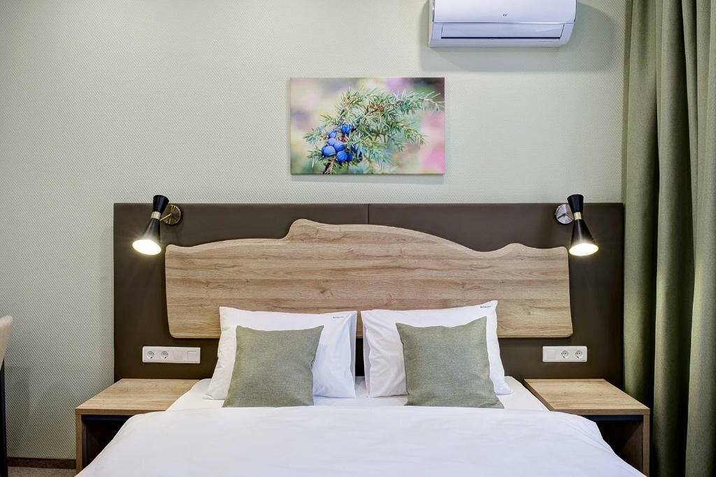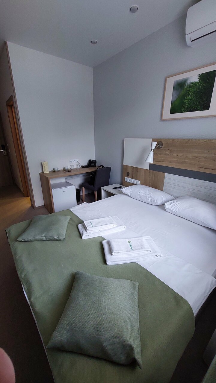 Проживала в номере для двоих, в целом не плохо. Кровать достаточно комфортна, не скрипит. В номере есть тв, холодильник. Проводится ежедневная уборка номера, с заменой полотенец. Единственный минус, почему и поставила 4 звёзды, это плохая шумоизоляция номеров. Добавлю, что у меня был включён завтрак, шведский стол, всё было вкусно.