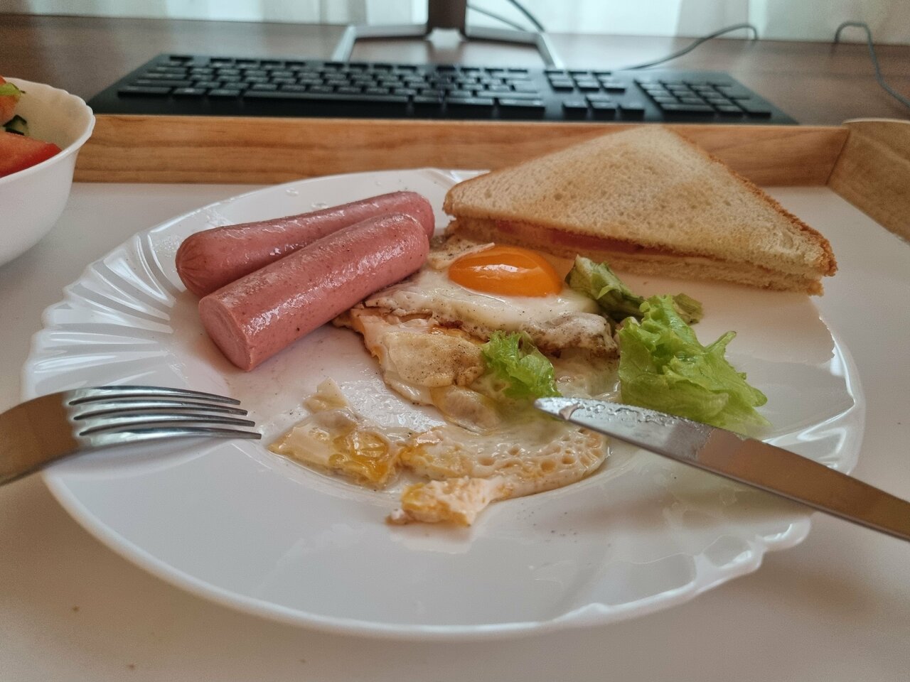 Расположение удобное — 10 минут от метро, центр города. Сам отель находится на 4 этаже, подниматься придется пешком. Подъезд отеля открытый — утром меня встретил мерзкий запах еще на 4 этаже и спящий бомж на первом. Облуживание не очень — завтрак вам предложат только с 8.00.