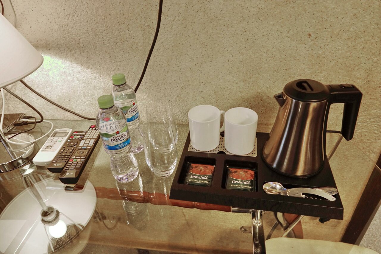 Хороший отель, расположенный в шаговой доступности самого центра (15-20 минут до Красной площади). В отеле есть необходимый гигиенический минимум: мыло, шампунь, гель для душа, зубной набор, полотенце, халат. Бесплатно представляется вода и чай. Есть мини-бар, есть возможность заказать завтрак (широкий, но ограниченный ассортимент) Отель расположен на 5-м этаже, 1-й и 2-й этаж являются общими и не всегда чистые