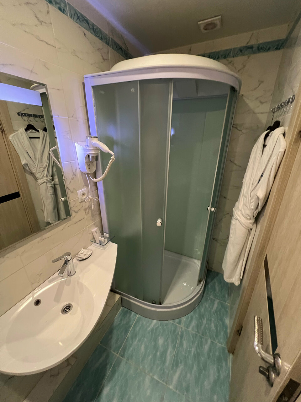 Напишу всё в кучу, сами ищите плюсы и минусы. Персонал довольно вежливый, стены картонные, расположения отеля удобное, комнатам не помешал бы косметический ремонт, на одного места более чем достаточно. Завтрак пока не пробовал. Также у меня есть 4 геля для душа и не одного шампуня. Напомню, что отель 3-х звёздочный.