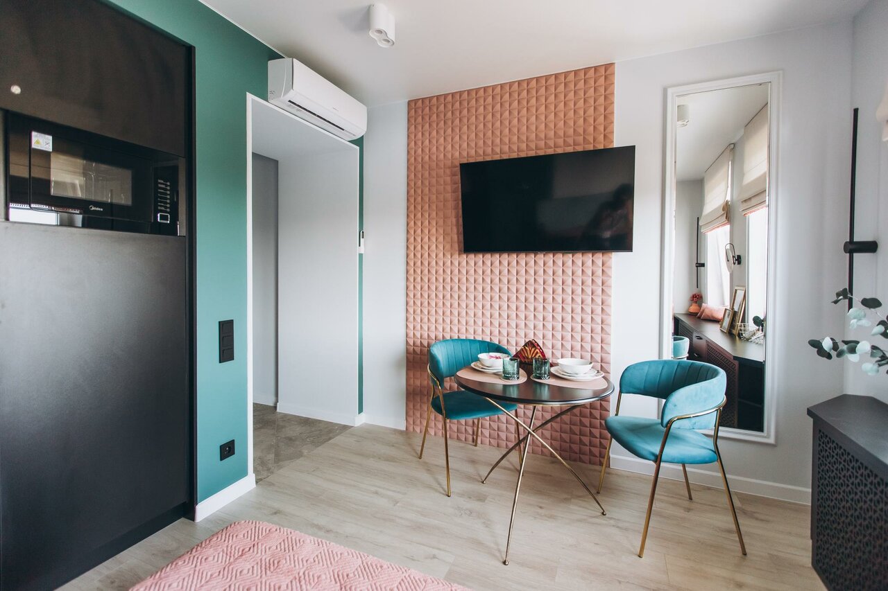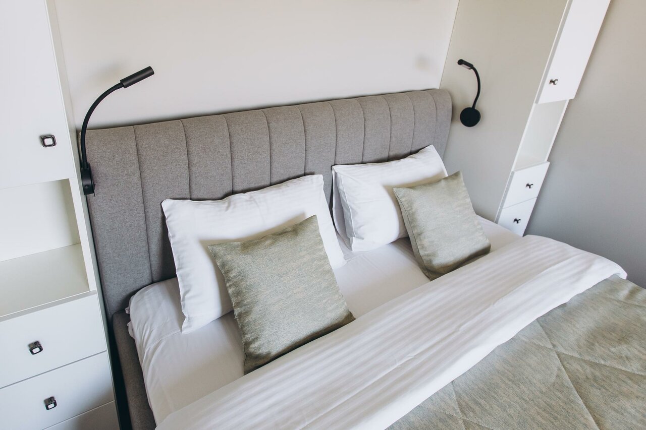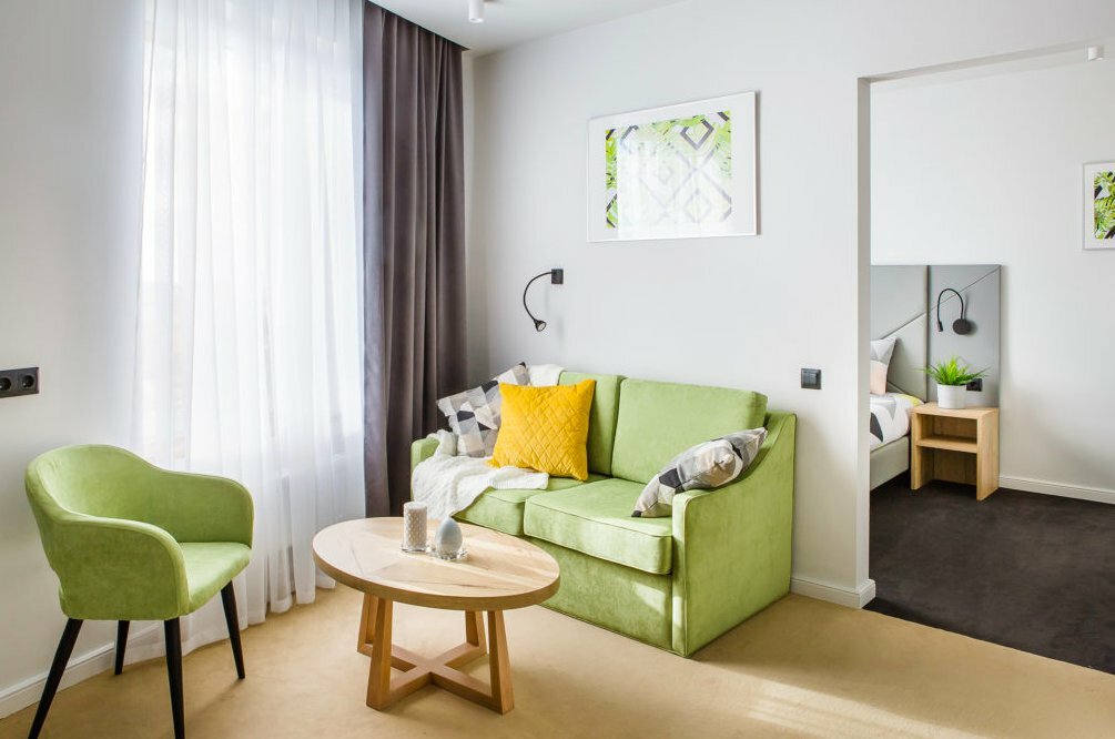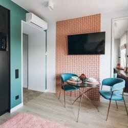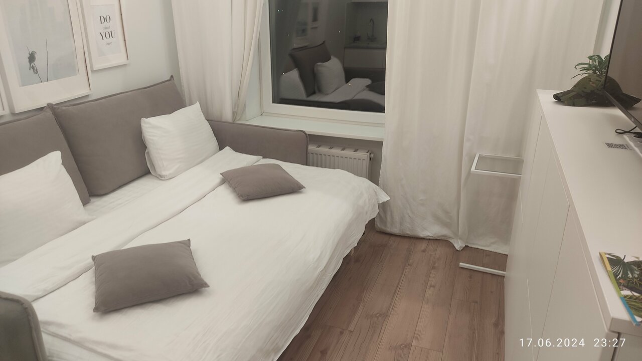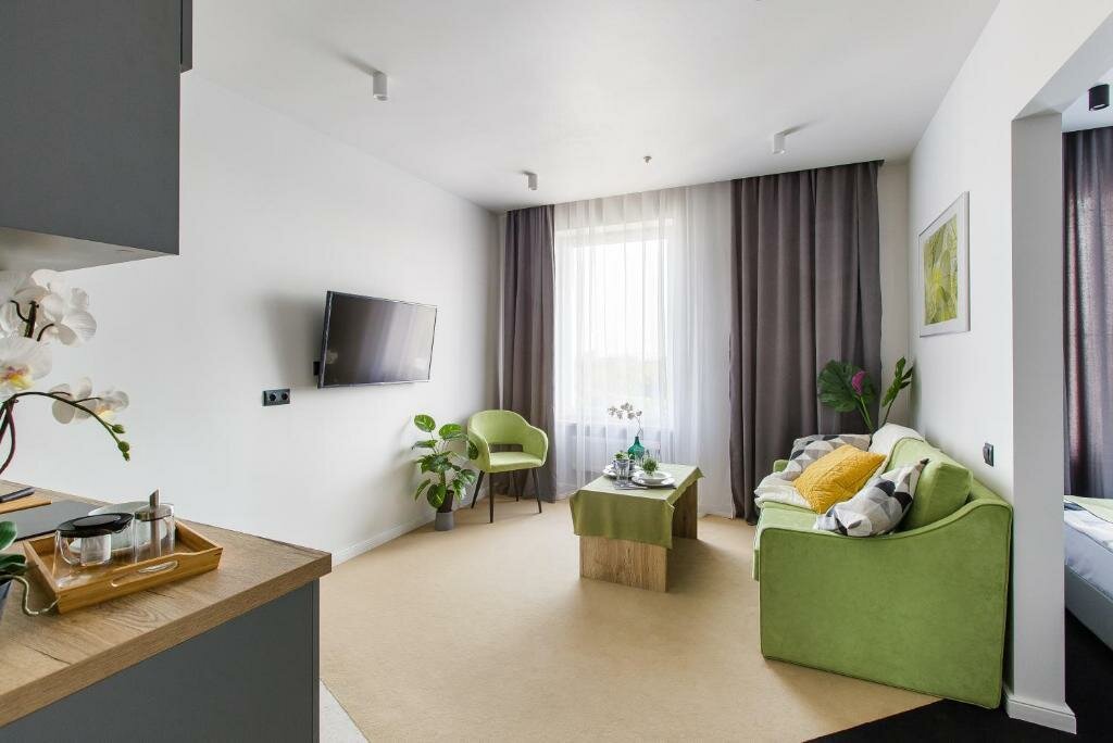 Очень уютные и чистые апартаменты. Есть все необходимое. Отзывчивые администраторы. Рядом чудесный парк. Единственно, что нам не хватило, это то, что из спальни в гостиную не было двери, а просто проем. Не удобно, когда ребенка положили спать в спальне, а сами хотим посмотреть телевизор. Показались тесными для семейных апартов. Но общее впечатление положительное. Рекомендую знакомым)