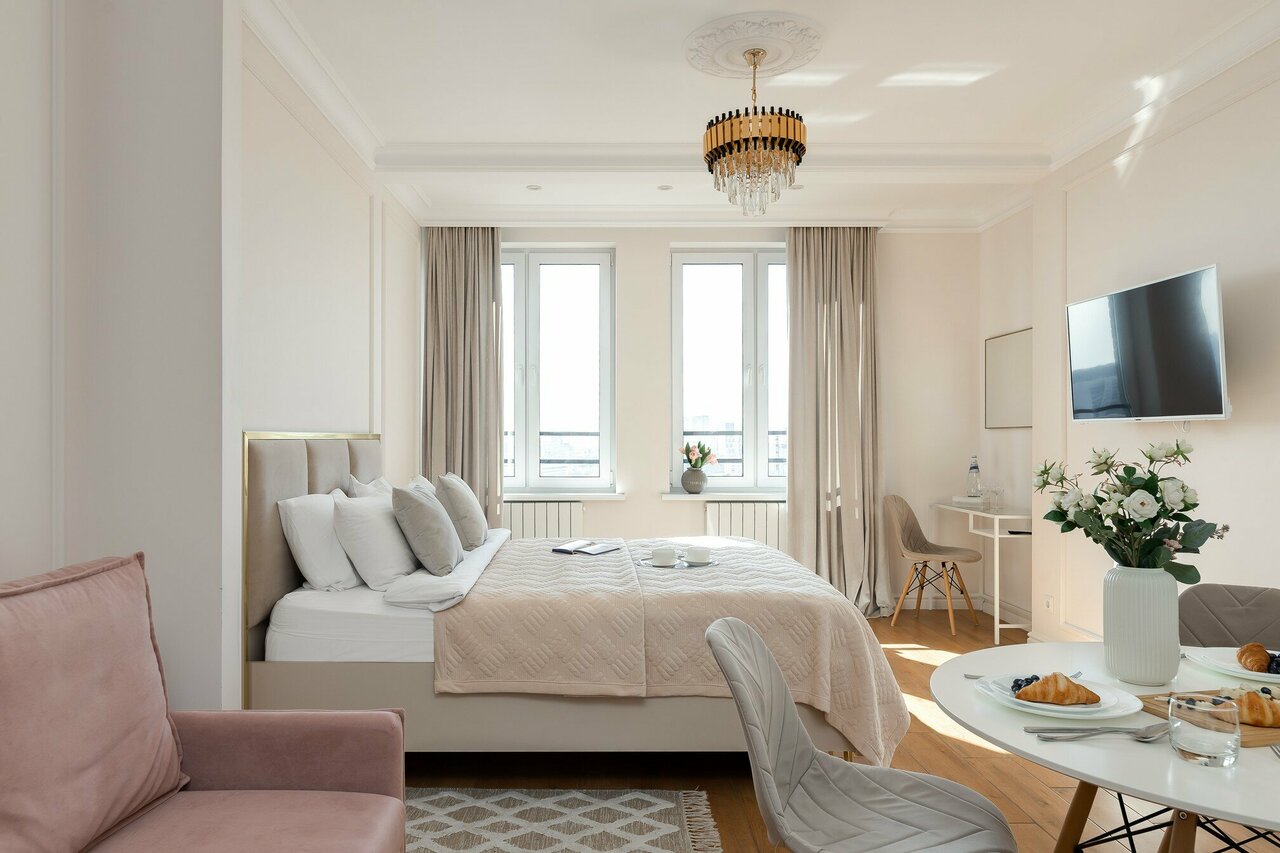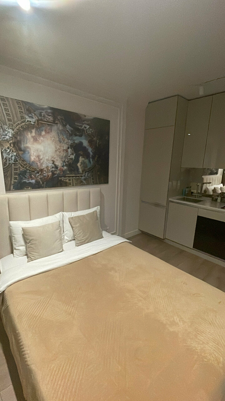 Очень удобный и комфортный отель, скоростные лифты, электронный ключ. Номер очень чистый, уютный, полностью оборудован для комфортного проживания. Чистая сантехника, стиральная и посудомоечная машина, быстрый wi-fi. Приятный бонус — наличие чая, кофе, печенек. Персонал в доступе по вотсап круглосуточно, быстро и оперативно отвечает на все вопросы. Месторасположение очень удобное, все необходимые магазины, неподалеку станция метро.