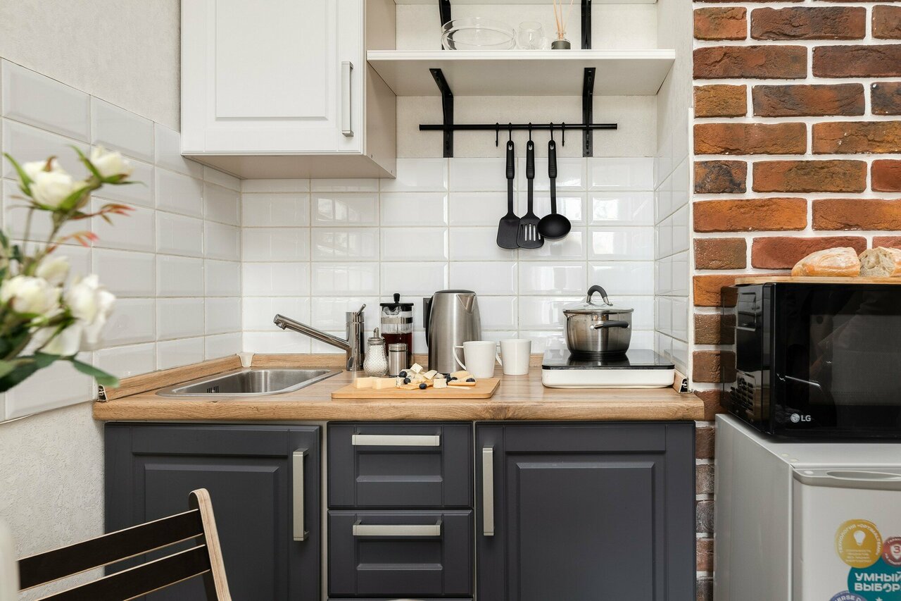 - Маленькая кухня со всеми удобствами и приборами.