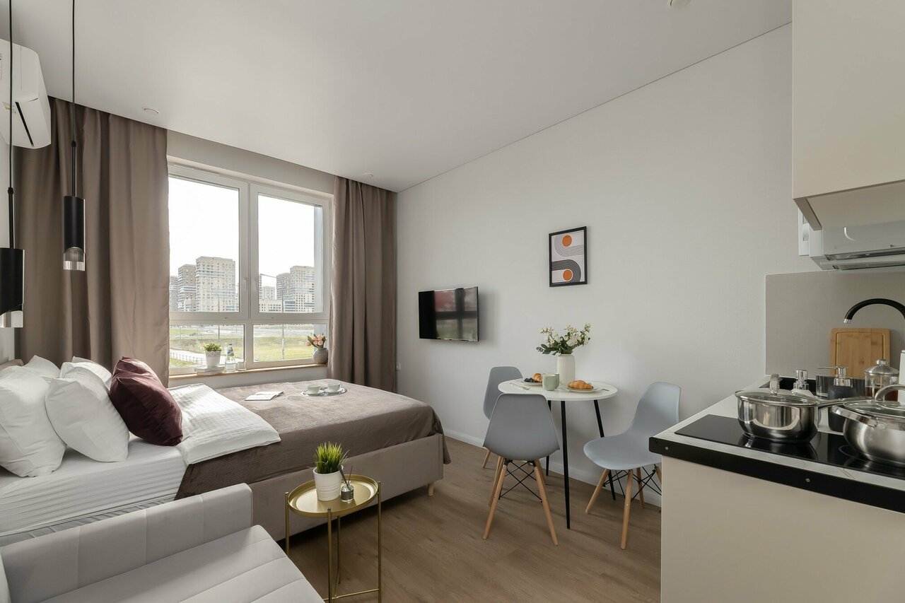 Прекрасные апартаменты, все соответствует описанию. Хороший район, классный вид из окна, приятный интерьер, чистота, милые мелочи (печенье, вкусный чай, вода в холодильнике), очень удобное самостоятельное прибытие и выезд.