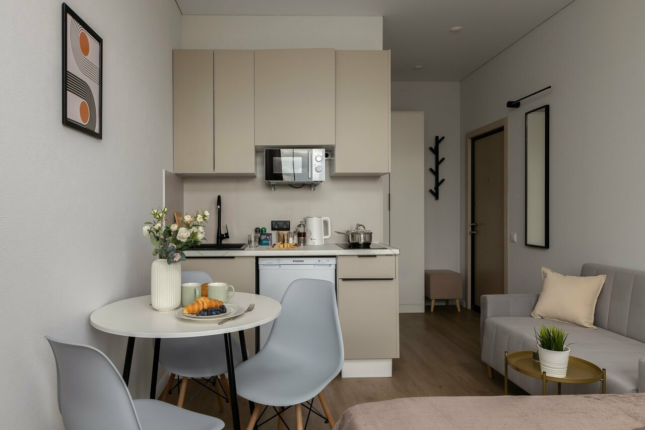 - Вежливый и приветливый персонал.; Полностью соответствует описанию и фото.; Полная комплектация (кухонная техника, посуда, бытовая химия).; Быстрый и отзывчивый сервис.; Удобное расположение (близко к метро, магазинам, кафе).