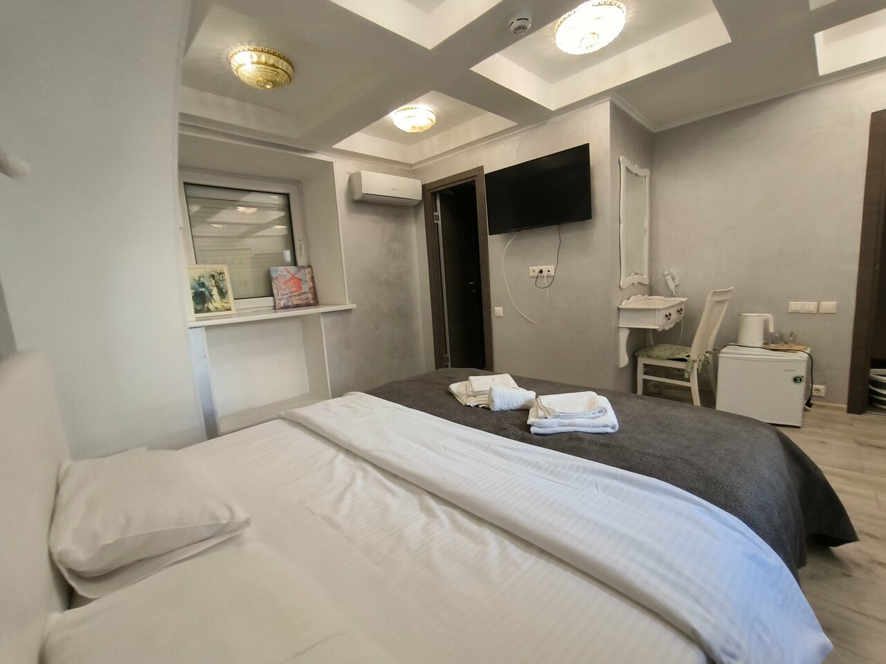 Двухместный номер ,с телевизором,кондиционером и всем необходимым для проживания.В ванной комнате находится джакузи с функцией гидромассажа.Бесплатный WI-Fi