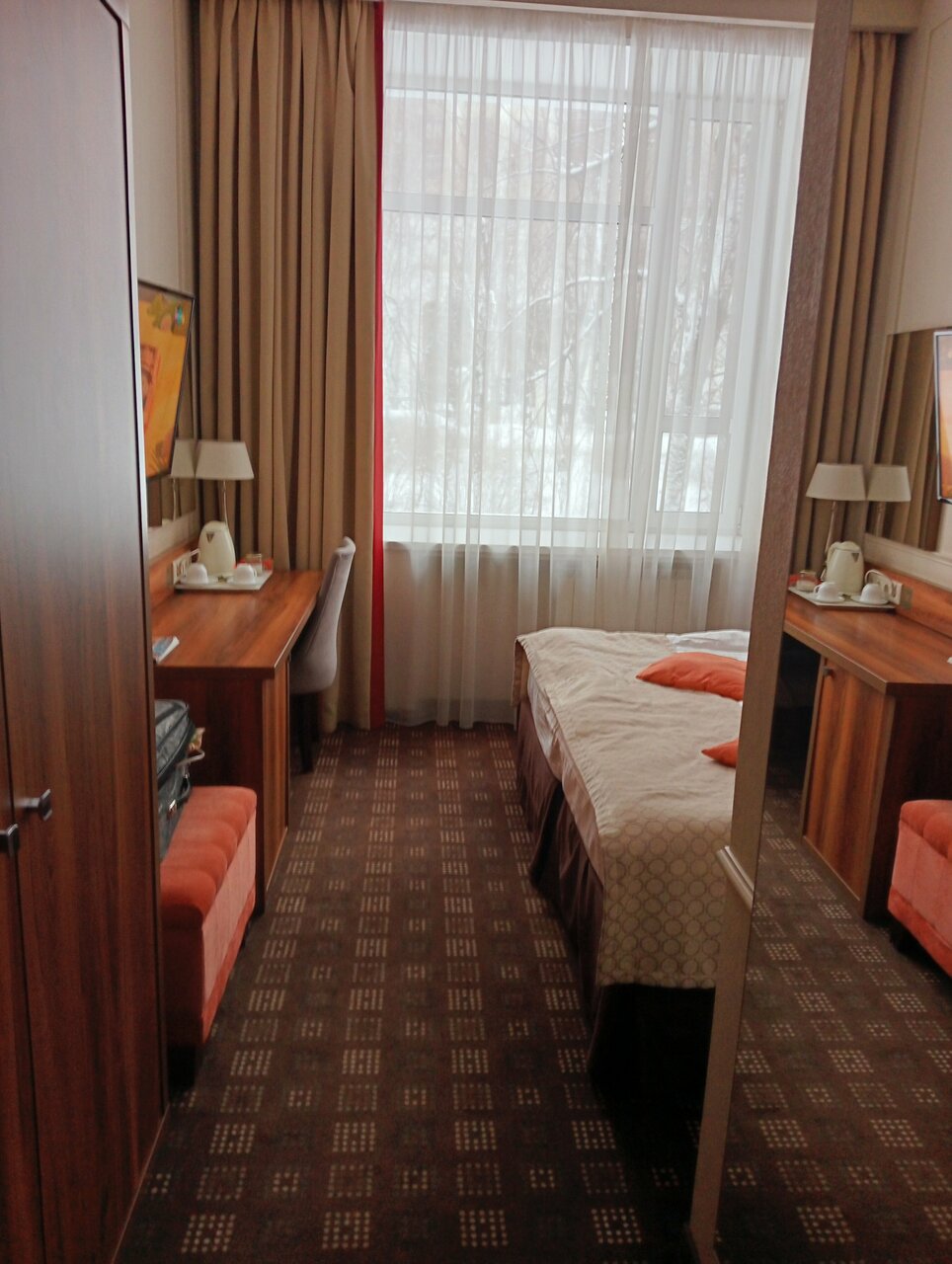 Если вдруг вы будете в рабочей командировке, то будьте готовы к некомпетентным администраторам, которые не правильно печатают фамилии и не могут оформить чеки Администратору Ольге отдельное спасибо за клиентоориентированность, попросили выслать почтой нужные документы с чеками, на словах сказали. что бухгалтер отправила простое письмо почтой России оно же бесплатное , которое нельзя никак отследить. Адресат его так и не получил, неужели нельзя было за свою ошибку доплатить 300р и отправить заказным хотя бы ??? Из-за вашей безответственности, люди не смогли вовремя сдать документы, чтобы организация отчитала за проживание Ко всему прочему в номере 223 не открывается окно, запах сигарет от предыдущих гостей был прекрасен, администрация отеля сказала, мол ели окно откроем, закрыть не сможем. Думайте сами