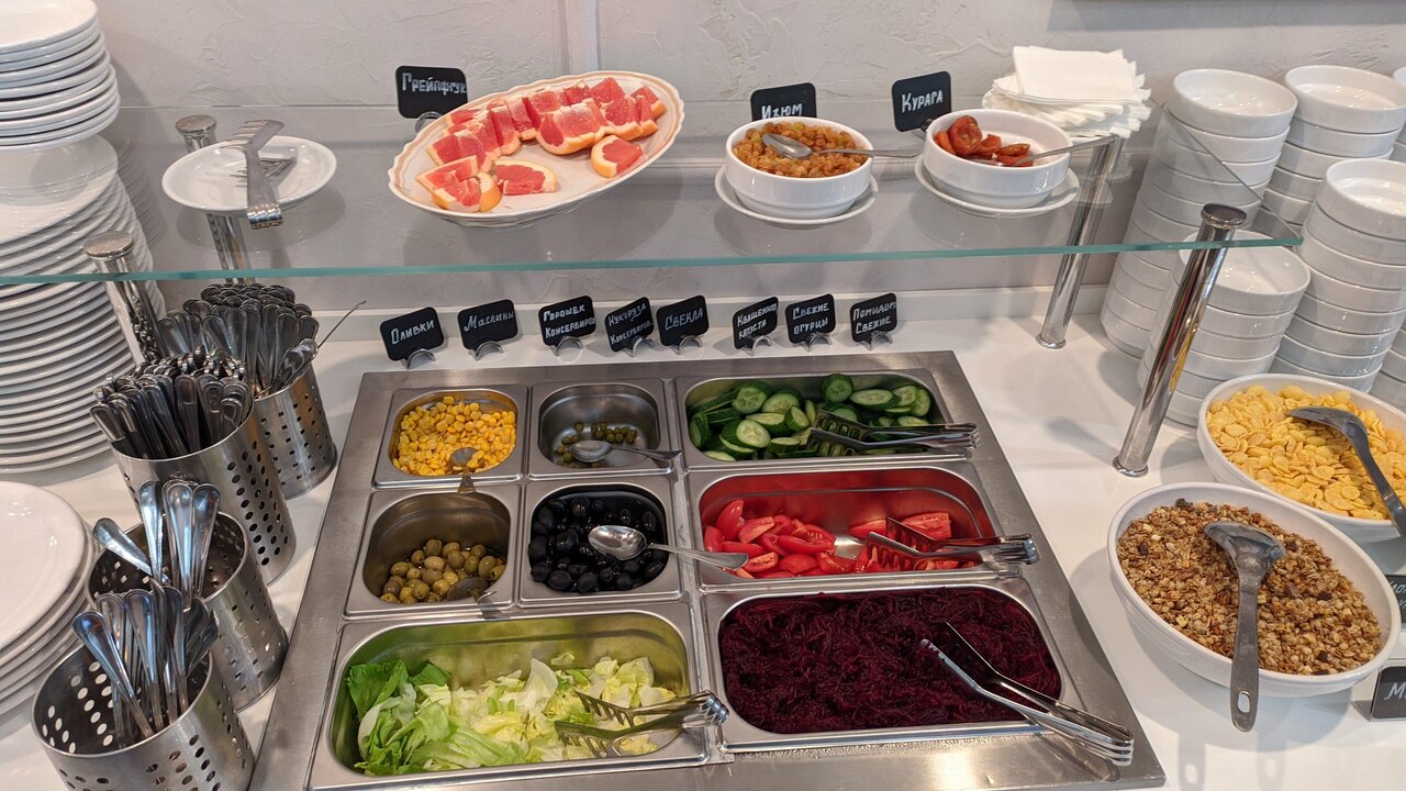 - Хороший шведский стол на завтрак (свежие продукты, большой ассортимент).