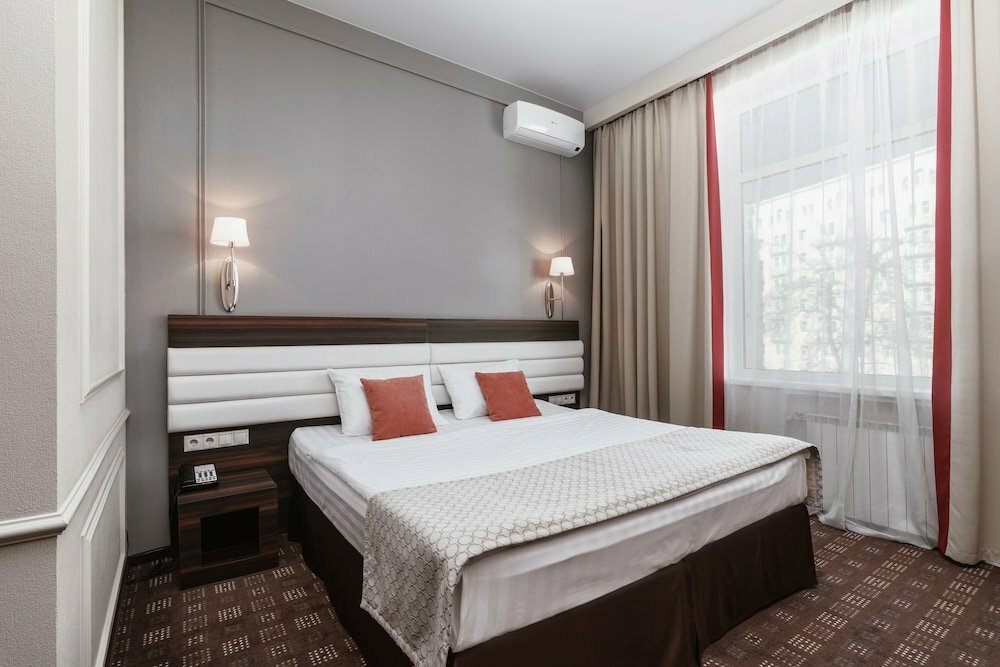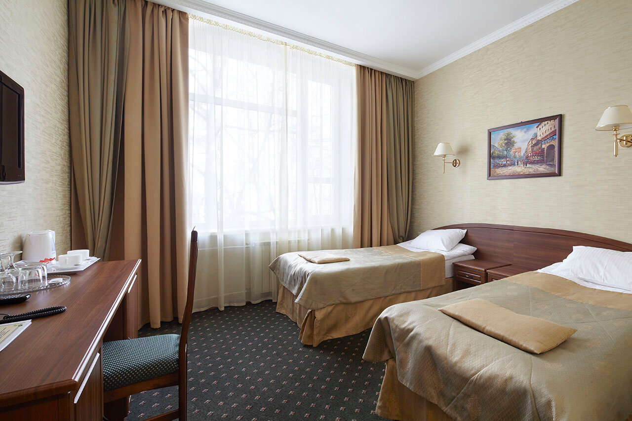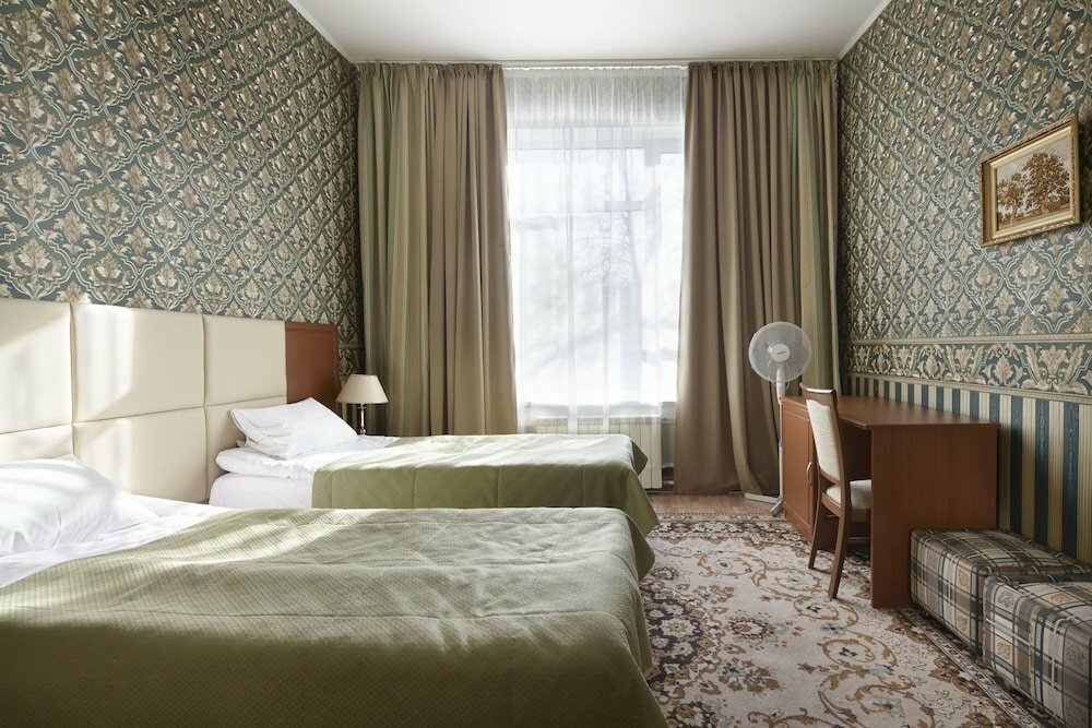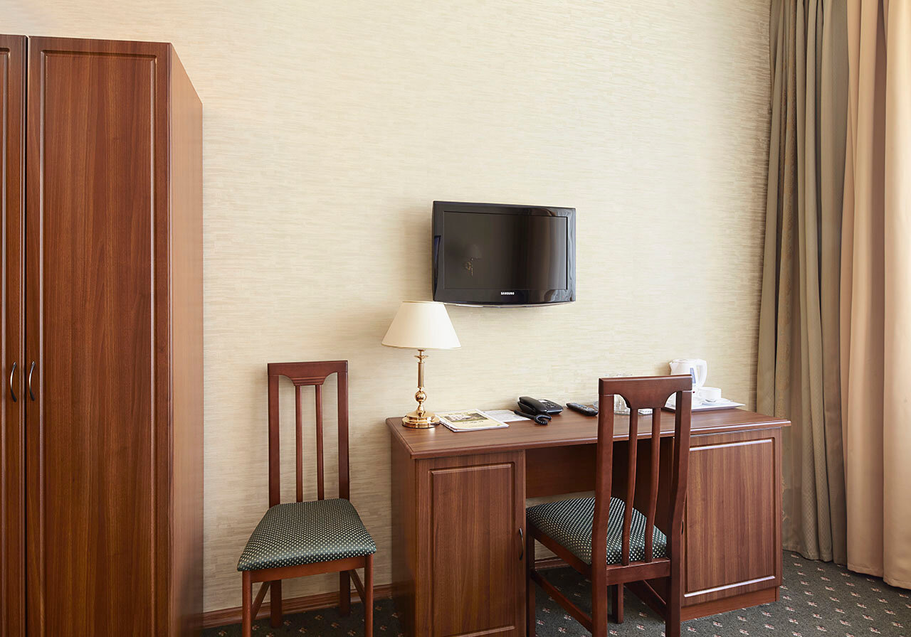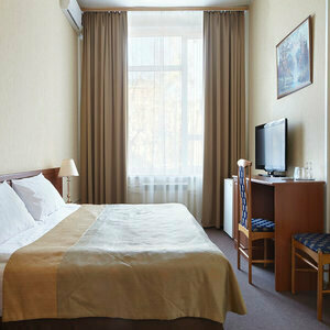 Удобный вариант для индивидуальных туристов, корпоративных гостей и военнослужащих.Мебель выдержана в классическом стиле. В номере телевизор, телефон, холодильник, сейф, большая двуспальная или две односпальные кровати. Полноценный санузел оснащё...