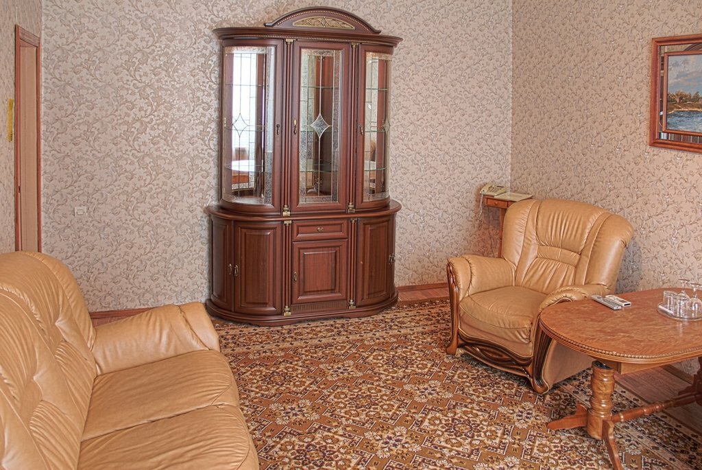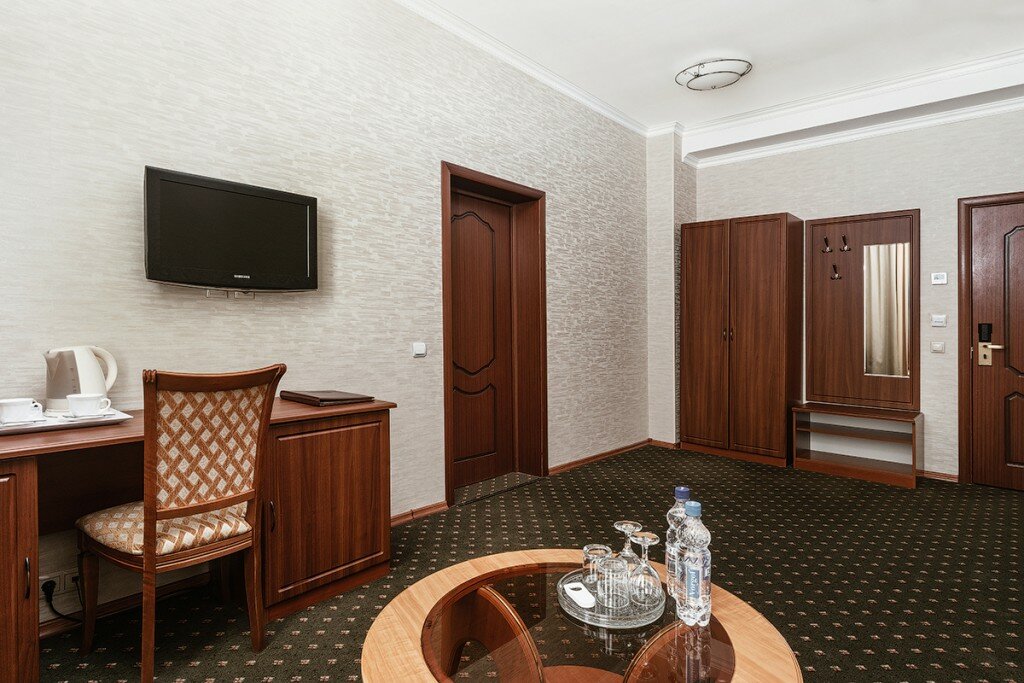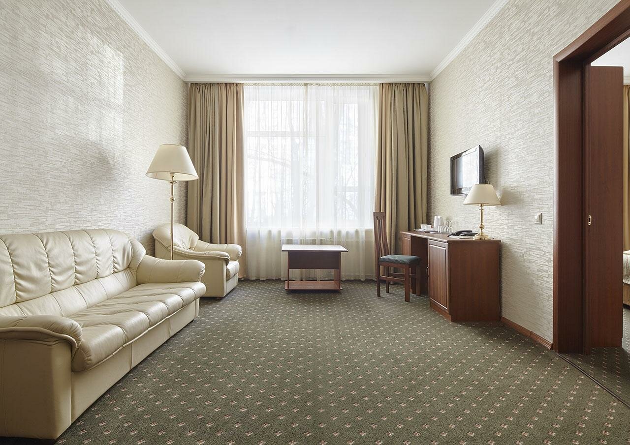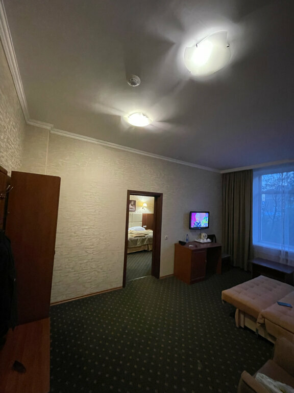 Просторный номер, состоящий из двух комнат. Прекрасный выбор для проживания семей с детьми и компаний.Номер выполнен в классическом стиле.В номере имеется телевизор, телефон, холодильник, чайная станция, сейф, большая двуспальная кровать в спаль...