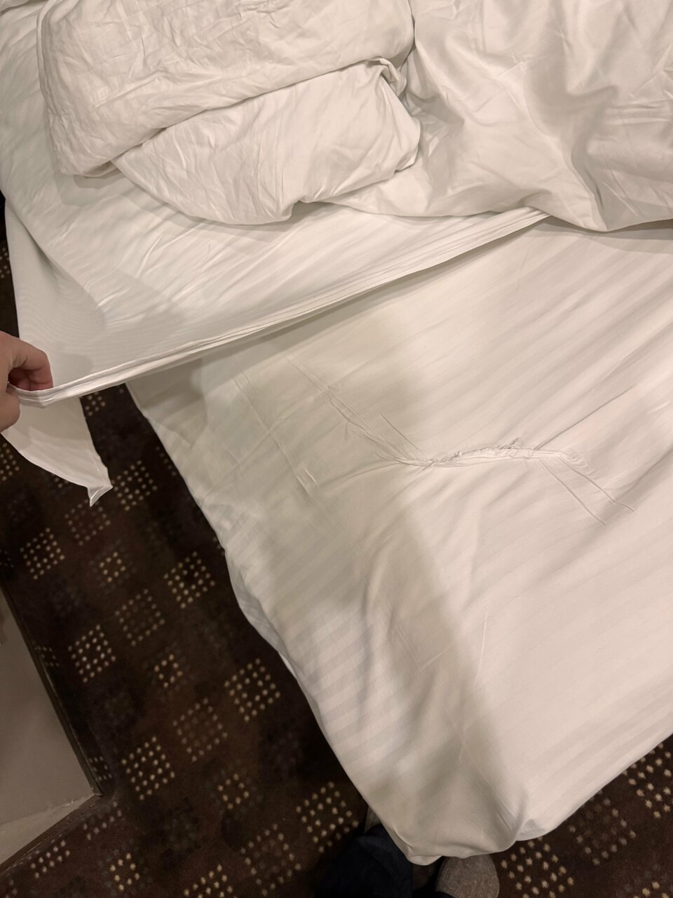 - Грязные или поврежденные полотенца и постельное белье.