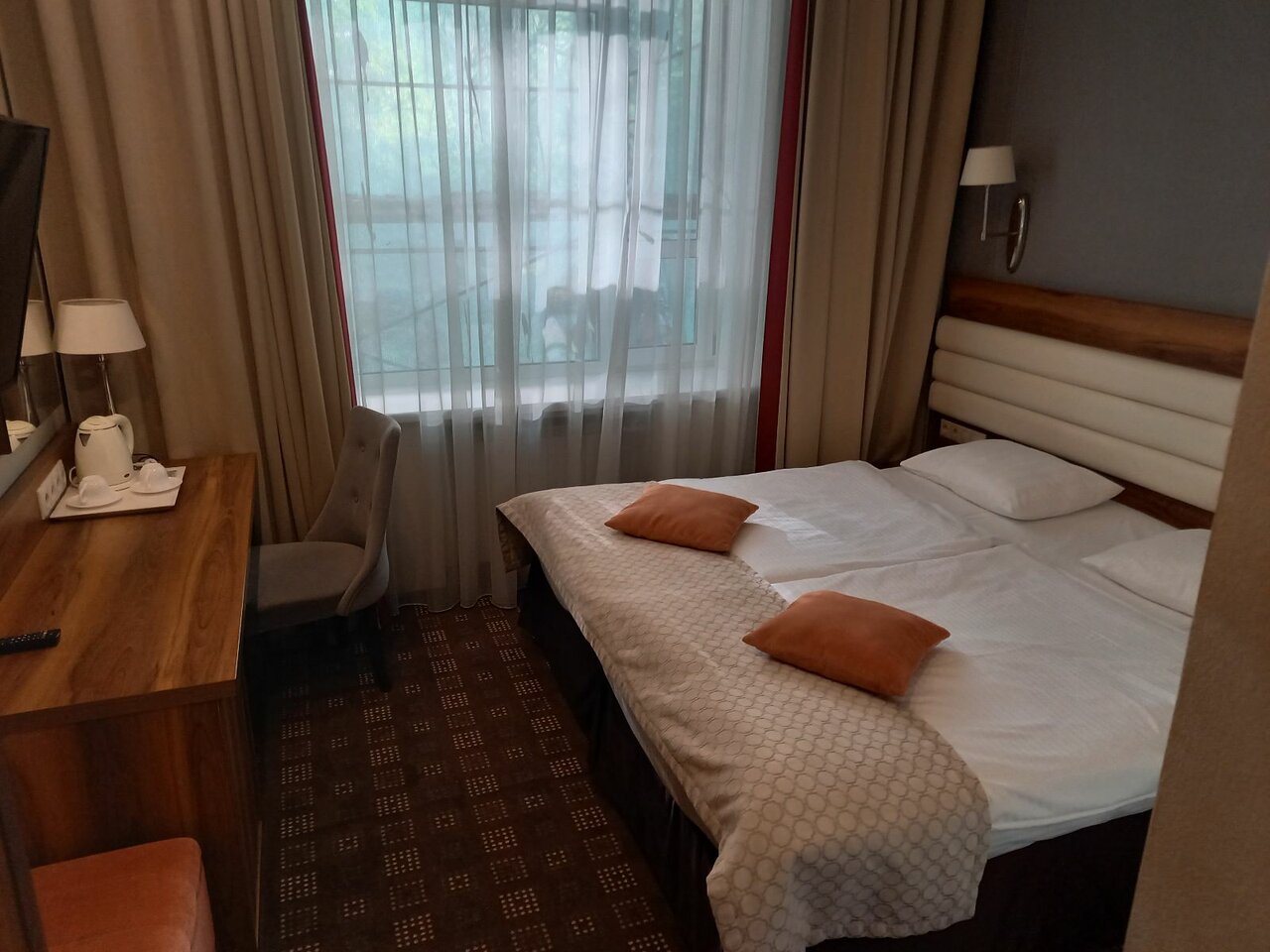 Очень неплохой вариант. Хороший выбор завтраков, чистый номер. Очень приятный персонал в ресторане. Перед закрытием предупреждают о том, что будут убирать шведский стол. Удобные кровати и планировка мебели. В ванной комнате гель для душа, чистые полотенца. На этаже есть кулер с водой. Рядом есть Чайхона, где можно недорого и вкусно поесть/заказать с собой при желании.