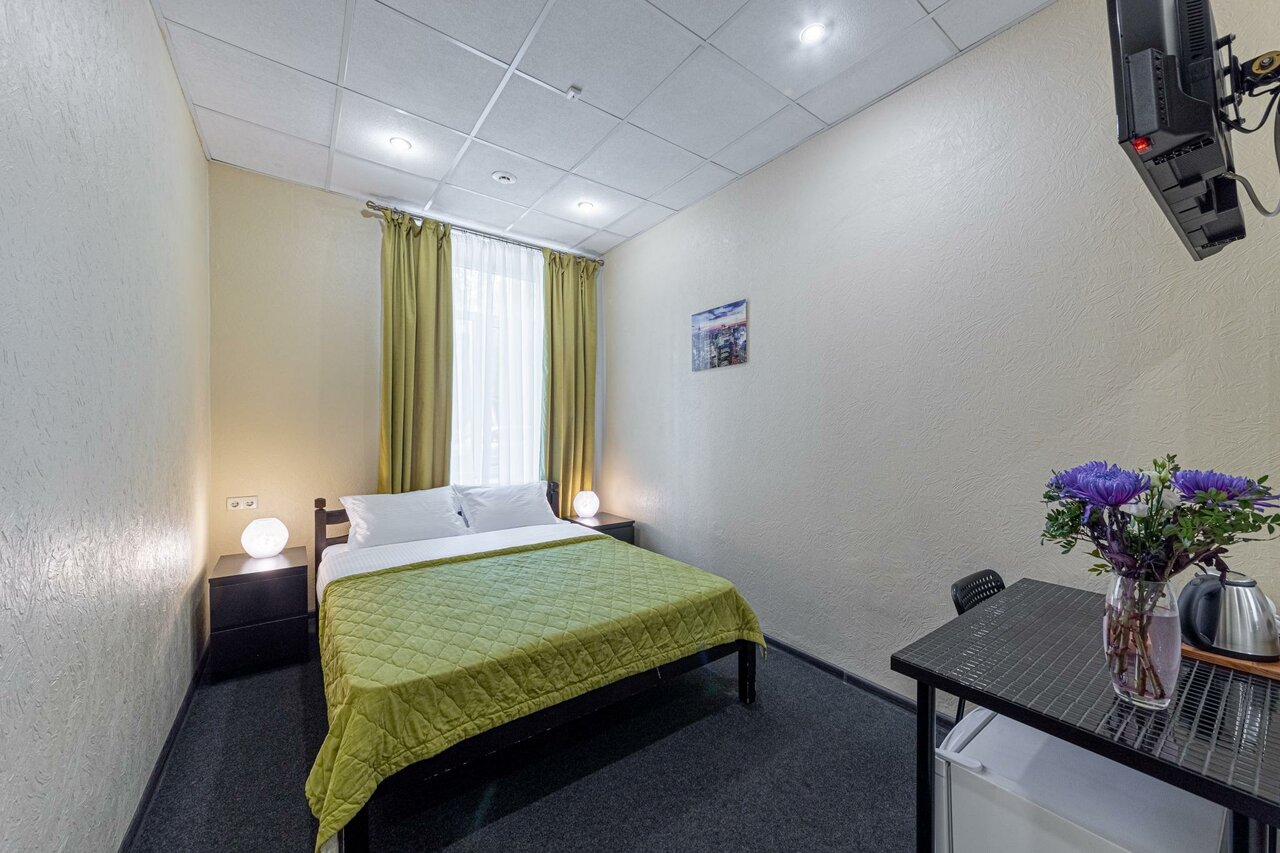 Роскошный двухместный номер со всем необходимым для комфортного размещения. В номере большая двухместная кровать с очаровательными ночником, стол, стулья, полочки для личных вещей.
