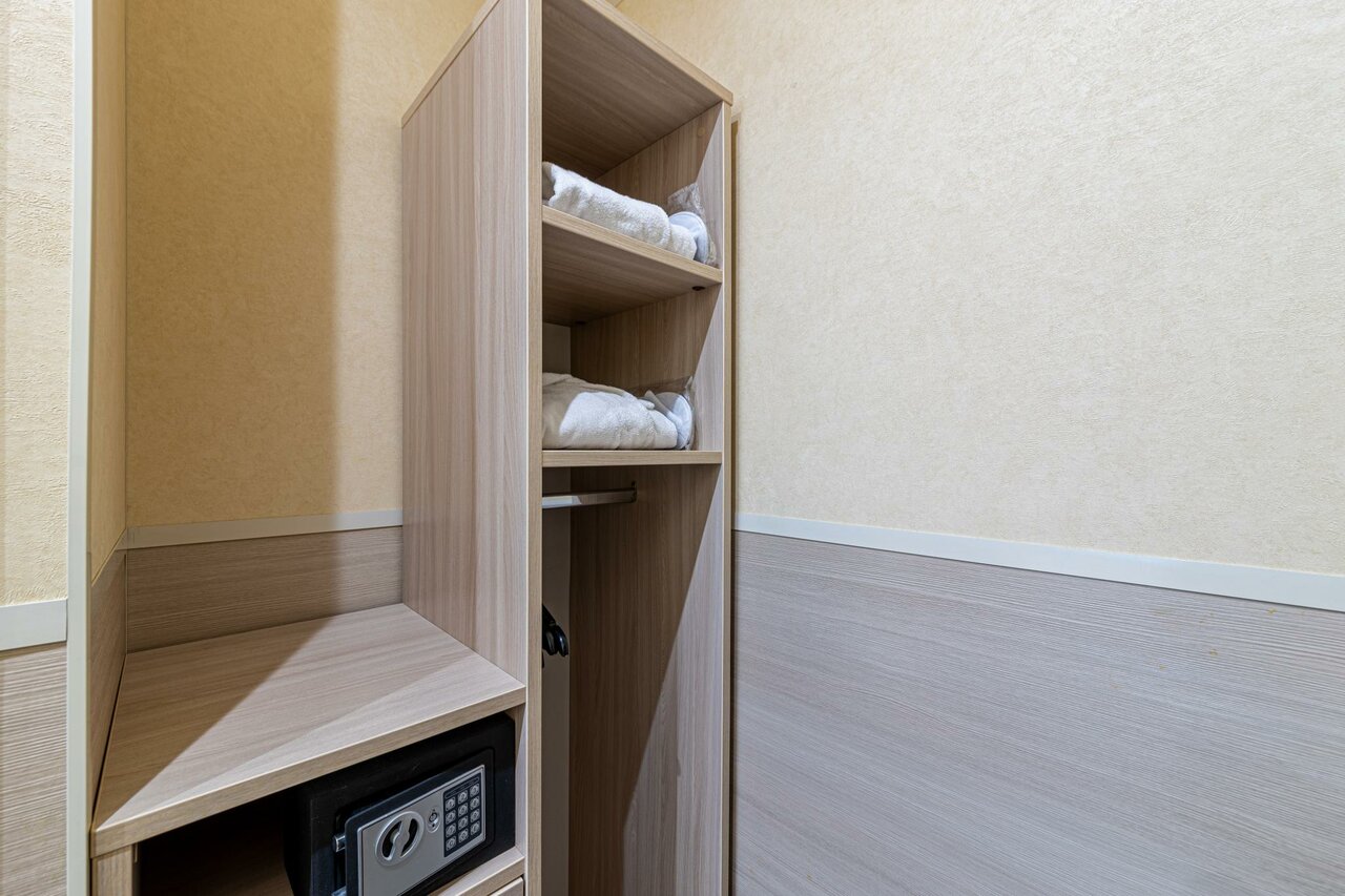 Заезд — с 14:00, выезд — до 12:00. Услуги включают камеру хранения, уборку, круглосуточную стойку регистрации и ускоренный check-in/out. Питание не предоставляется.