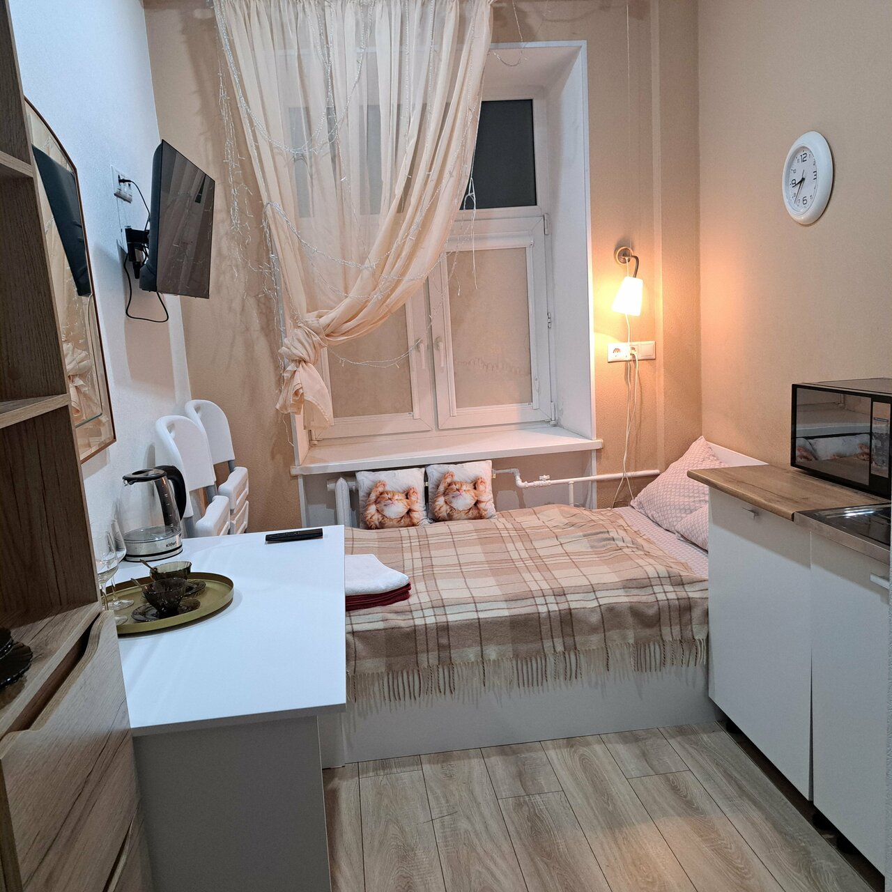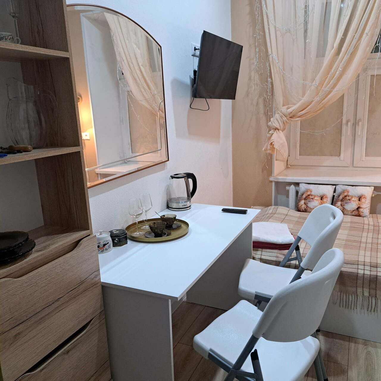 Отличная гостиница в соотношении цена-качество. Номер очень чистый и благоустроенный. Бельё хорошее, чистое. Полотенца хорошо постираны и приятно пахнут. Были в феврале и было немного прохладно. Приятный бонус в качестве дополнительного теплого одеяла, хорошего качества. Посуда хорошая, Техника: утюг, чайник, микроволновка, маленький холодильник всё хорошее, не убитое. Даже лампа для чтения есть. Хозяйка очень отзывчивая и ответственная. Заселились дистанционно. Внизу есть охранник. На территории можно поставить машину. Есть столовая. Еда вкусная и не дорогая. Рекомендую.