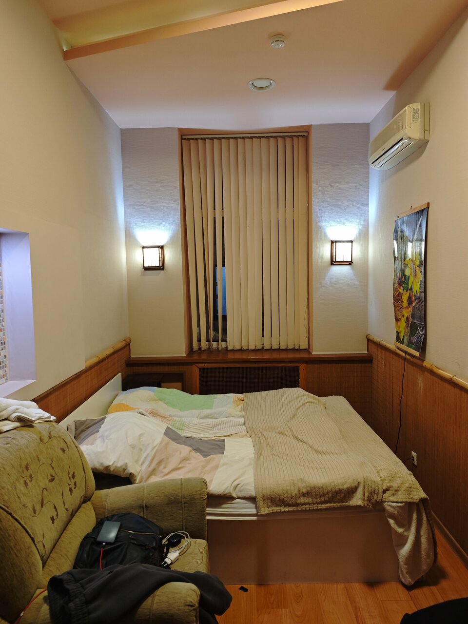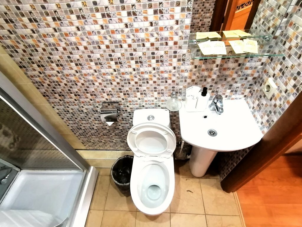 Не ведитесь на цену и фото на сайте, и также на отзывы без фото не смотрите, вот номер за 3000 (на фото). Полотенце есть, тапочек, средств гигиены нет. Фен просить на ресепшене. Туалет/душ отдельно, соседняя комната рядом с номером. Слышимость очень хорошая, стены тонкие. По чистоте не могу сказать однозначно, но пойдёт для 1 ночи чисто переночевать. Не советую, мое личное мнение.