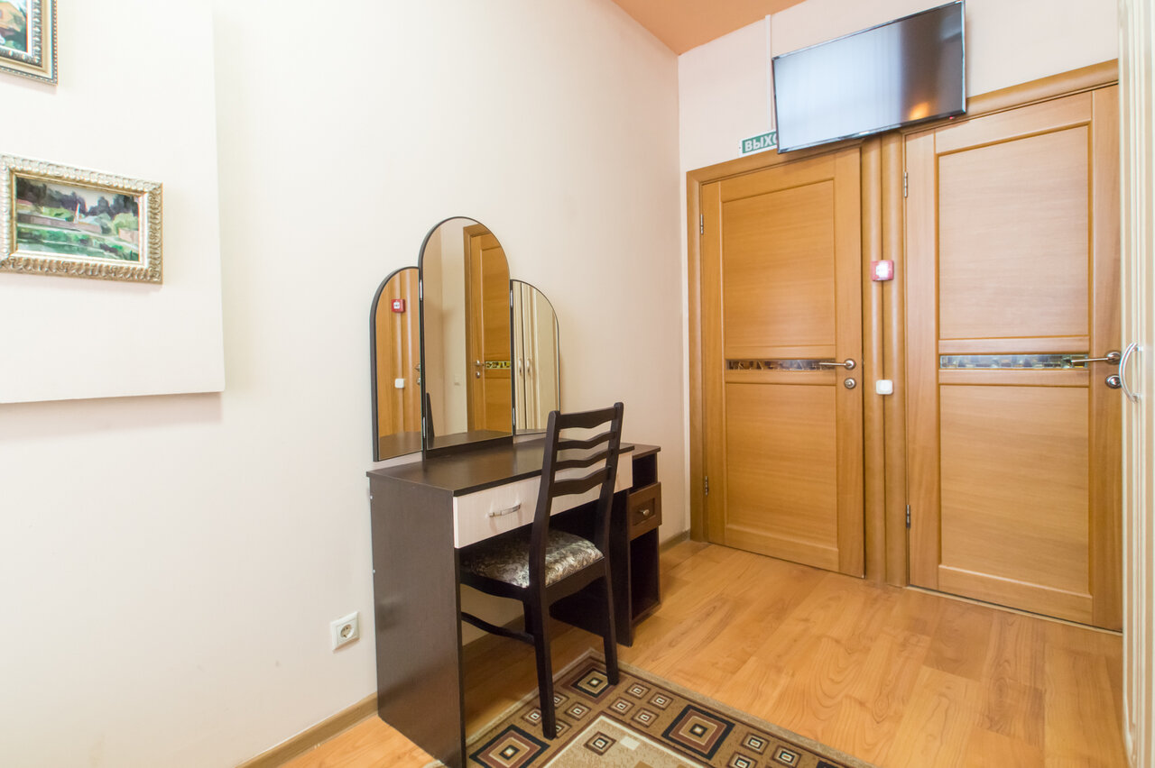 Номер нуждается в обновлении, трёхместный это конечно фантастика, фантастике, кресло диван времён 80х годов.. санузел и душ находится отдельно, вне номера.. белье чистое, в номере почти тепло. Слышимость 99%. Жилой дом, подъезд грязный и прокуренный.