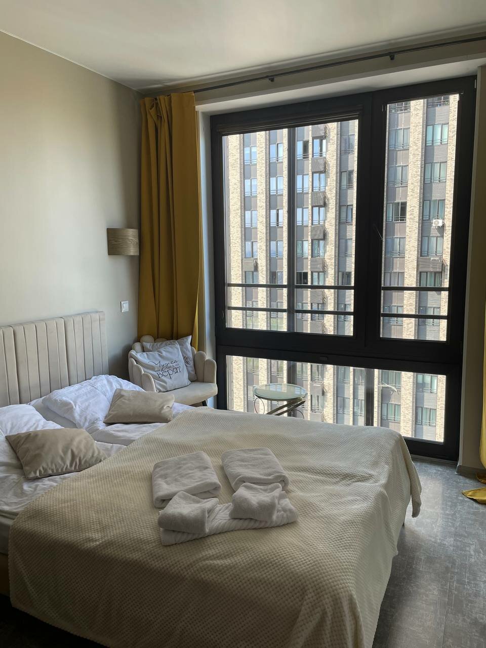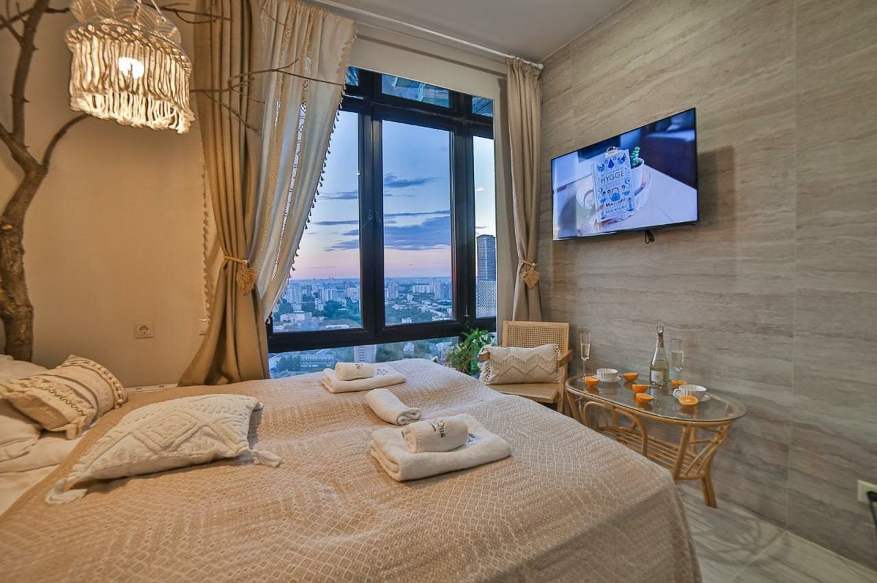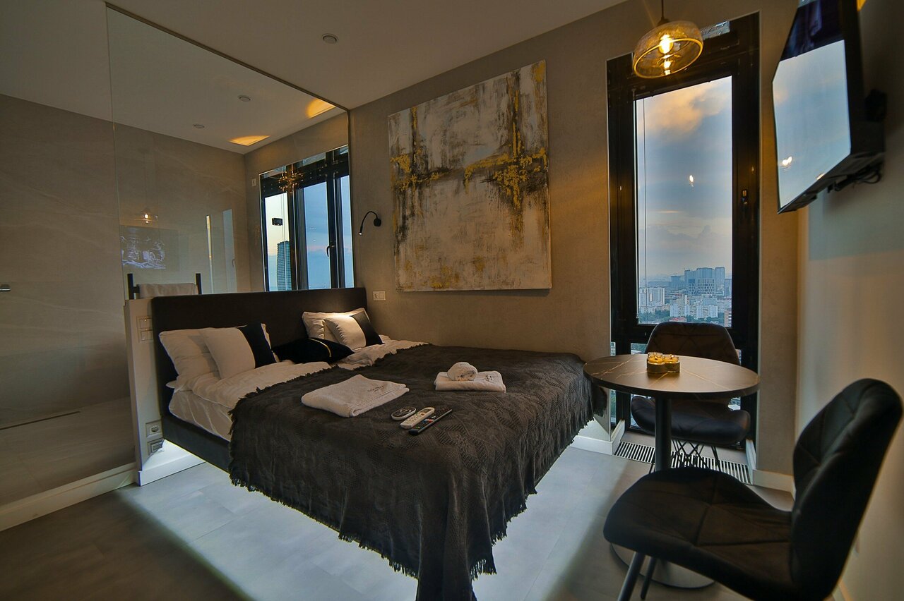 Очень понравились апартаменты! Много места, очень чисто, невероятный вид с 32 этажа. Есть все необходимое на каждого гостя, включая одноразовые тапочки, набор для умывания. По опыту, в апартах так не везде, поэтому очень порадовали. С заботой о клиентах) Сюда хочется возвращаться снова — это самое важное! Спасибо)
