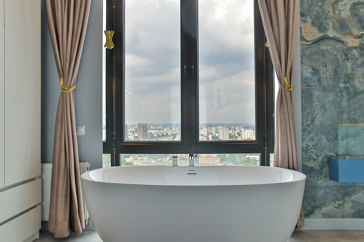 - Ванна или джакузи у окна.
