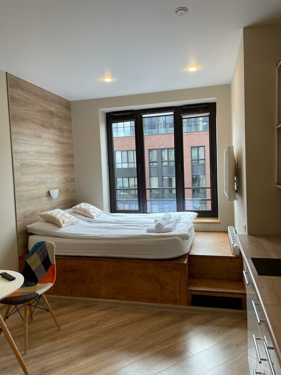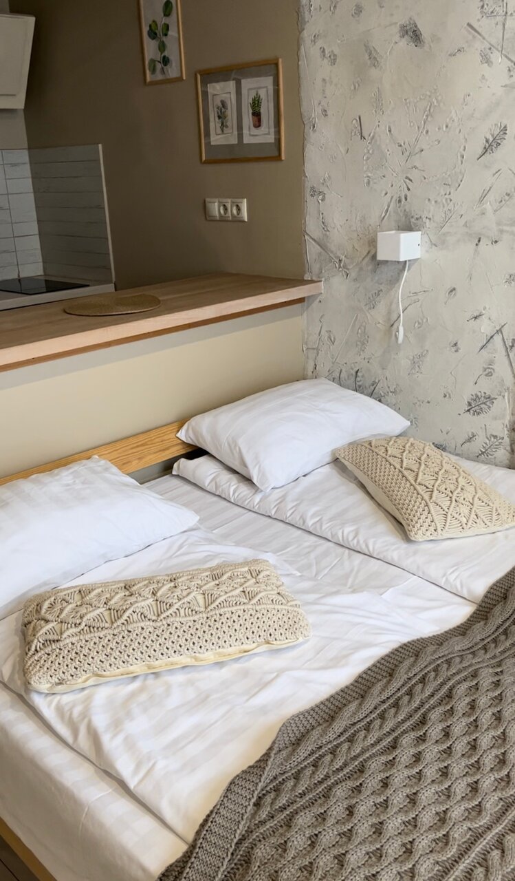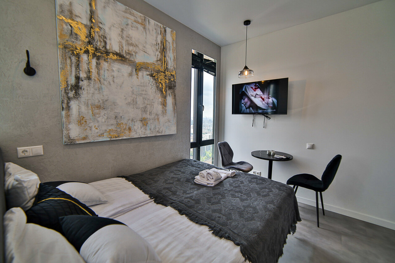 Прикольный формат, апартаменты с хорошим видом из окон и свежим ремонтом. Удобные и адекватные по стоимости. С приятным удивлением обнаружил в номере вообще все, что было на фотографиях, хотя предполагал, что некоторые предметы были только как антураж для сьемок