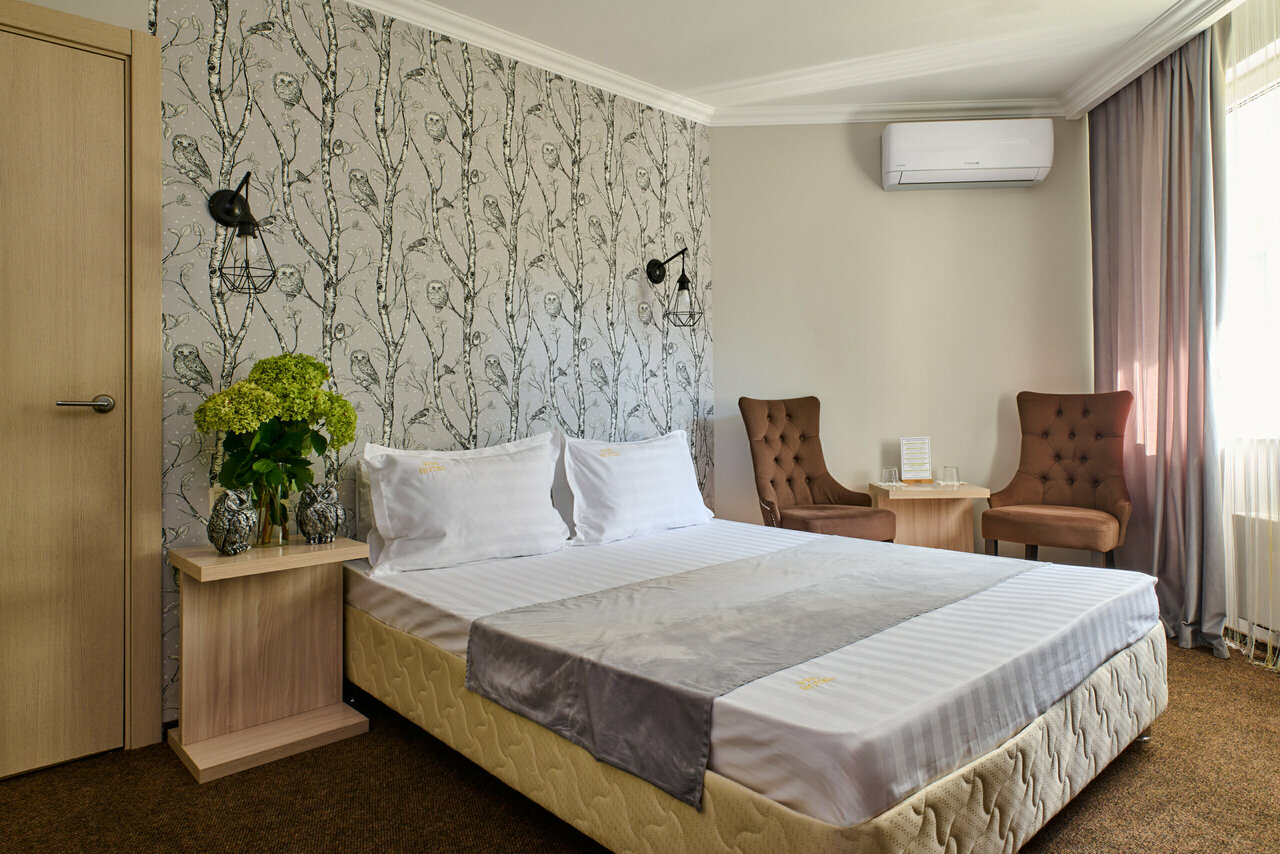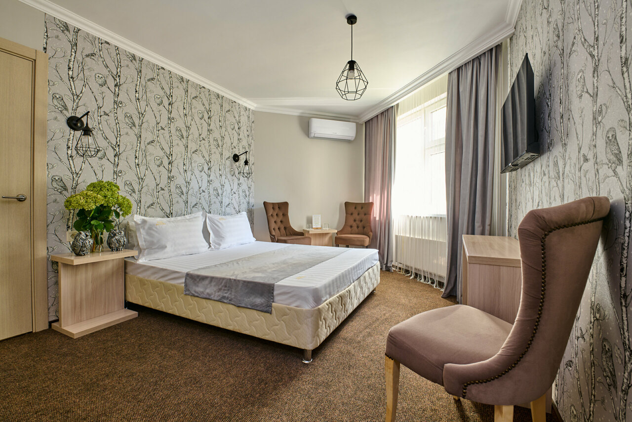 Номера выполнены в классическом стиле с видом на внутренний двор отеля.Светлые, интерьерные номера подарят ощущение спокойствия и умиротворения.Как и в любом нашем номере , порядок , чистота , красота и уют ждут Вас!В номере большая двуспальная...