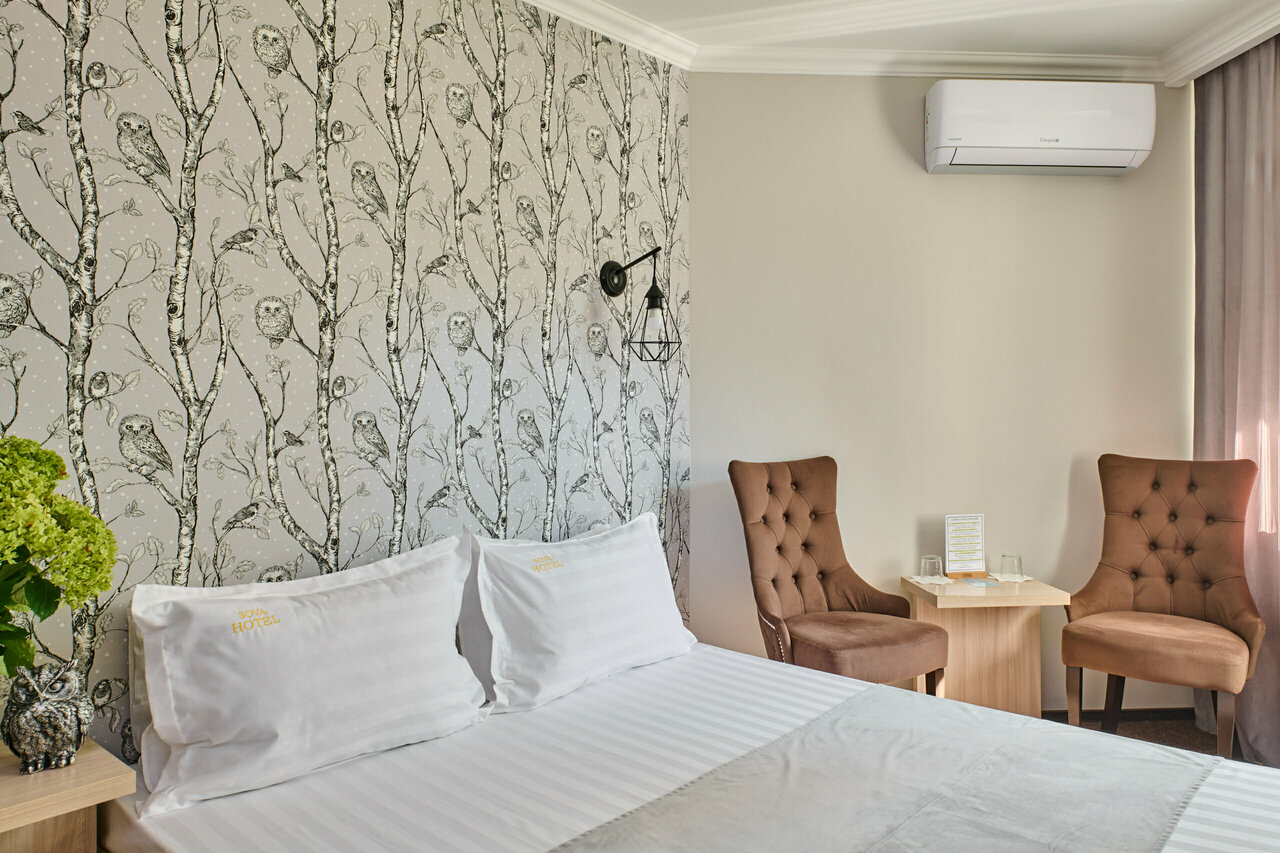 Шикарный, новый , не большой отель, комфортный номер, отлично обученный персонал, мы были с котом, нас не выгнали))))
