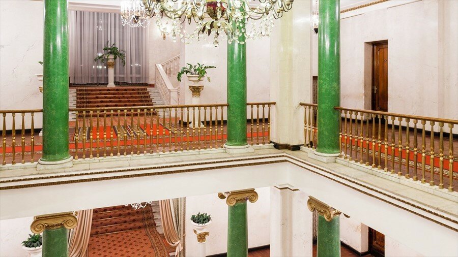 - Удобные кровати и чистые номера.; Историческая атмосфера (отель-музей).; Красивый, аутентичный отель с духом советской элиты.; Отличный уровень сервиса.; Живая музыка (рояль) во время завтрака.
