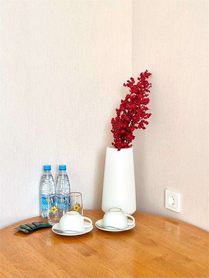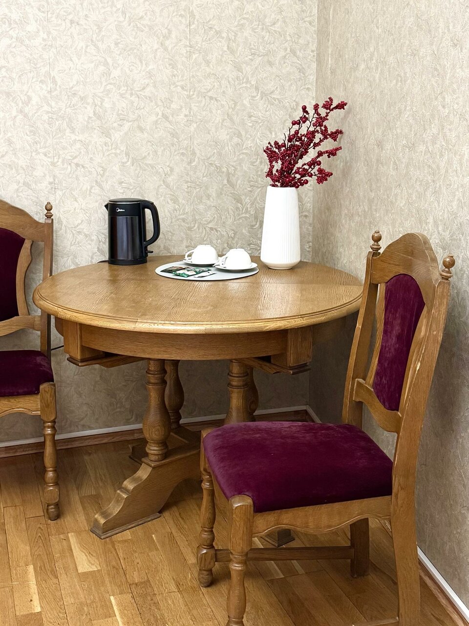 Расположение потрясающее! В номере есть холодильник, чайник, кружки, даже тапочки. Были зимой, из окон дуло жутко, это немного испортило впечатление. Также в номере душевая кабина была не закреплена, каждый раз как на волнах принимали водные процедуры. Но бесконтактное заселение очень удобное, документы подготовили и привезли заранее, т.к. рано утром был поезд, за что отдельное большое спасибо!