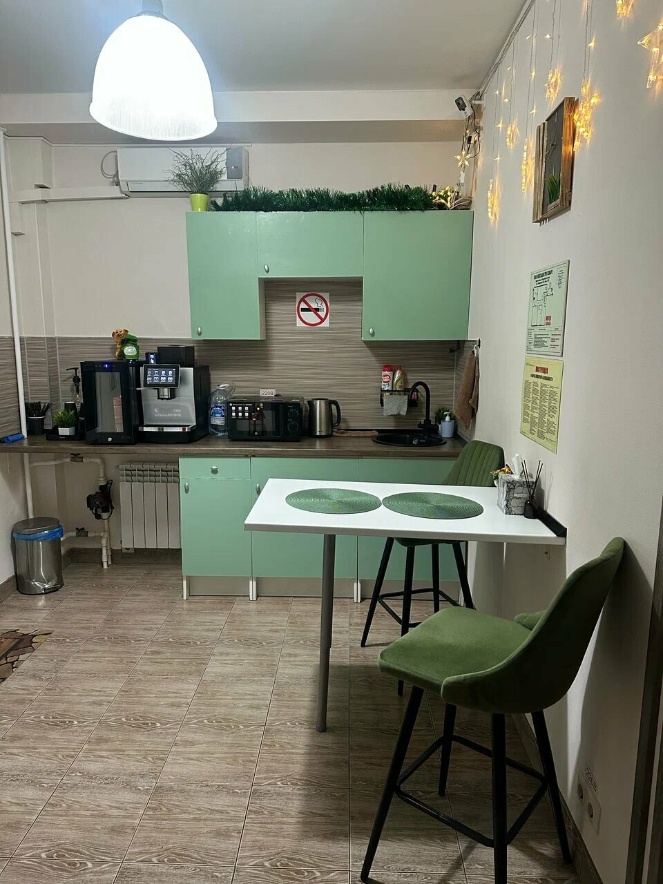 Чувствуешь себя, как дома. Комплектация достаточная, как в номере, так и на кухне. Приветливый, отзывчивый персонал. Под боком, вкусная ‘Чайхана’, круглосуточный минимаркет. Метро, в пяти минутах ходьбы.