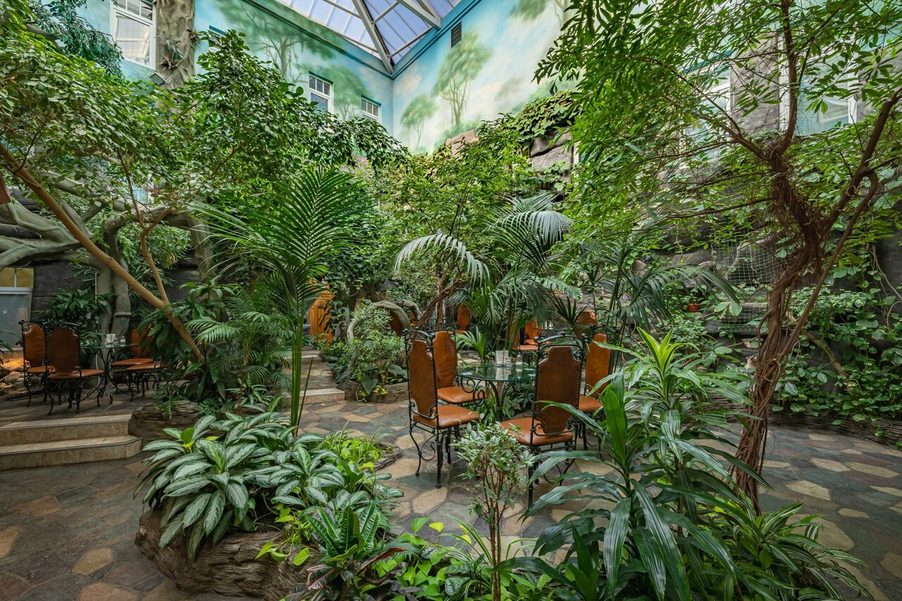Очень красивый интерьер. Зимний сад и живые черепахи очаровали. Уютно.