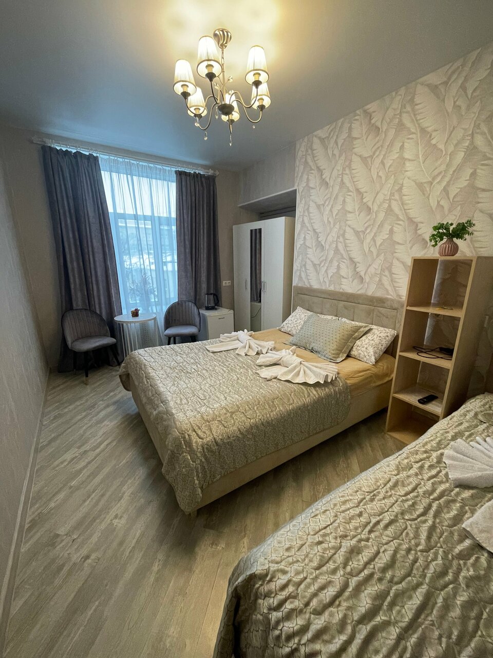 Останавливалась в семейном номере — было очень комфортно. Уютная атмосфера, тихо, несмотря на близость к центру. Оснащён всем, что нужно: стиральная машина, оборудованная кухня. Отдельное спасибо за чай и кофе — приятно, когда такие мелочи уже включены в стоимость.